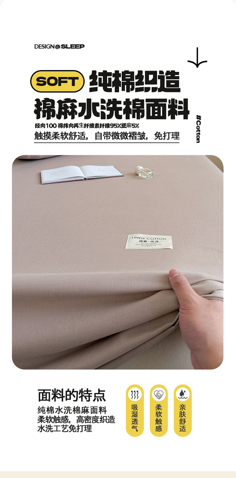 桃子家居 2026新款A类纯棉水洗原生态棉麻纯色织标简约无印单品床单床笠系列 棉麻单品-麦咖
