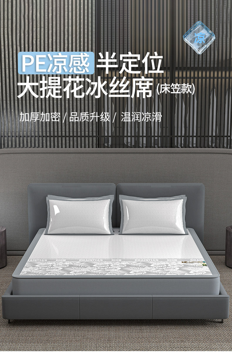 (总)小牛席业 2026新款半定位大提花凉感冰丝席(床笠款)凉席竹席藤席冰藤席乳胶席豆豆席,灰色,粉色,蓝色,香槟