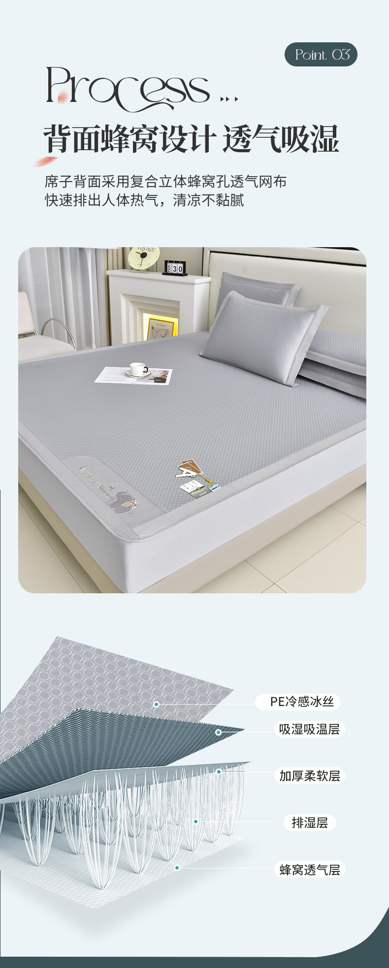 商品名称:小牛席业 2026新款小冰块大象凉感冰丝席(床笠款)凉席竹席藤席冰藤席乳胶席豆豆席 灰色