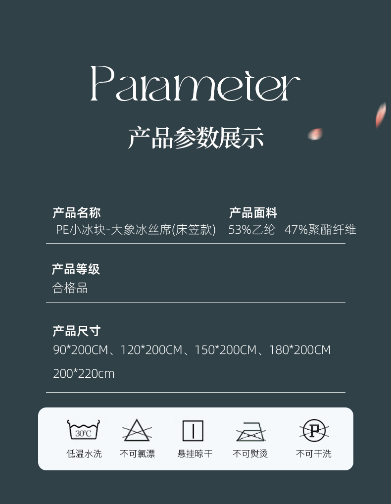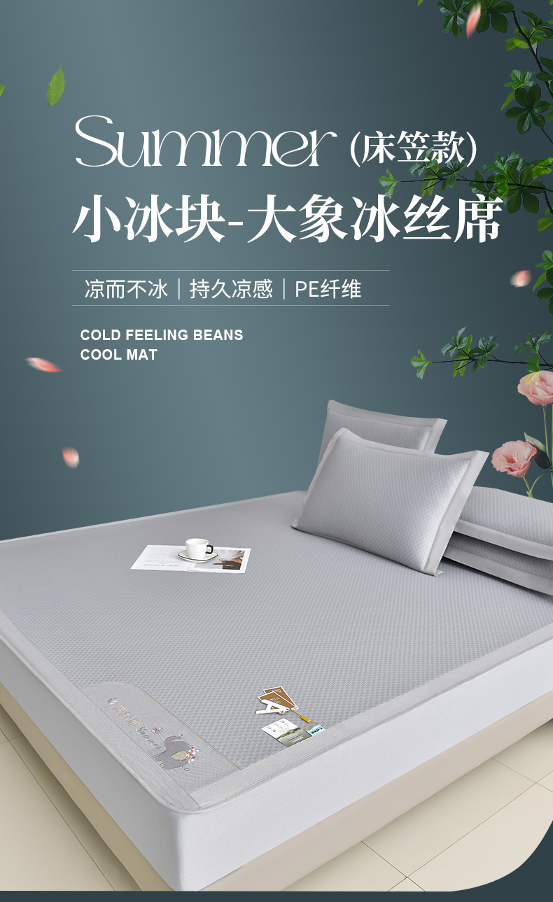 (总)小牛席业 2026新款小冰块大象凉感冰丝席(床笠款)凉席竹席藤席冰藤席乳胶席豆豆席,绿色,粉色,灰色,蓝色,香槟