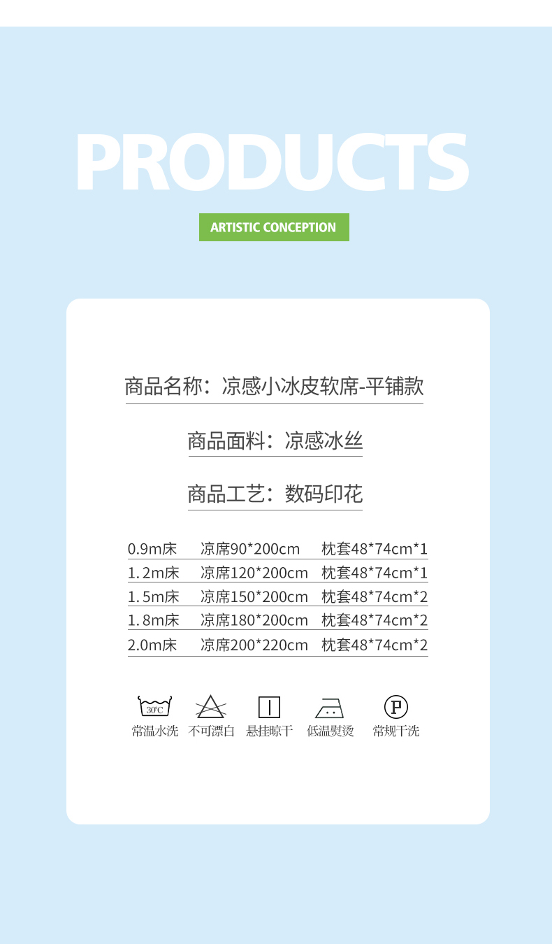 商品名称:(总)丝羽坊 2026新款ins设计师原创大版小清新卡通冰皮复合软凉席