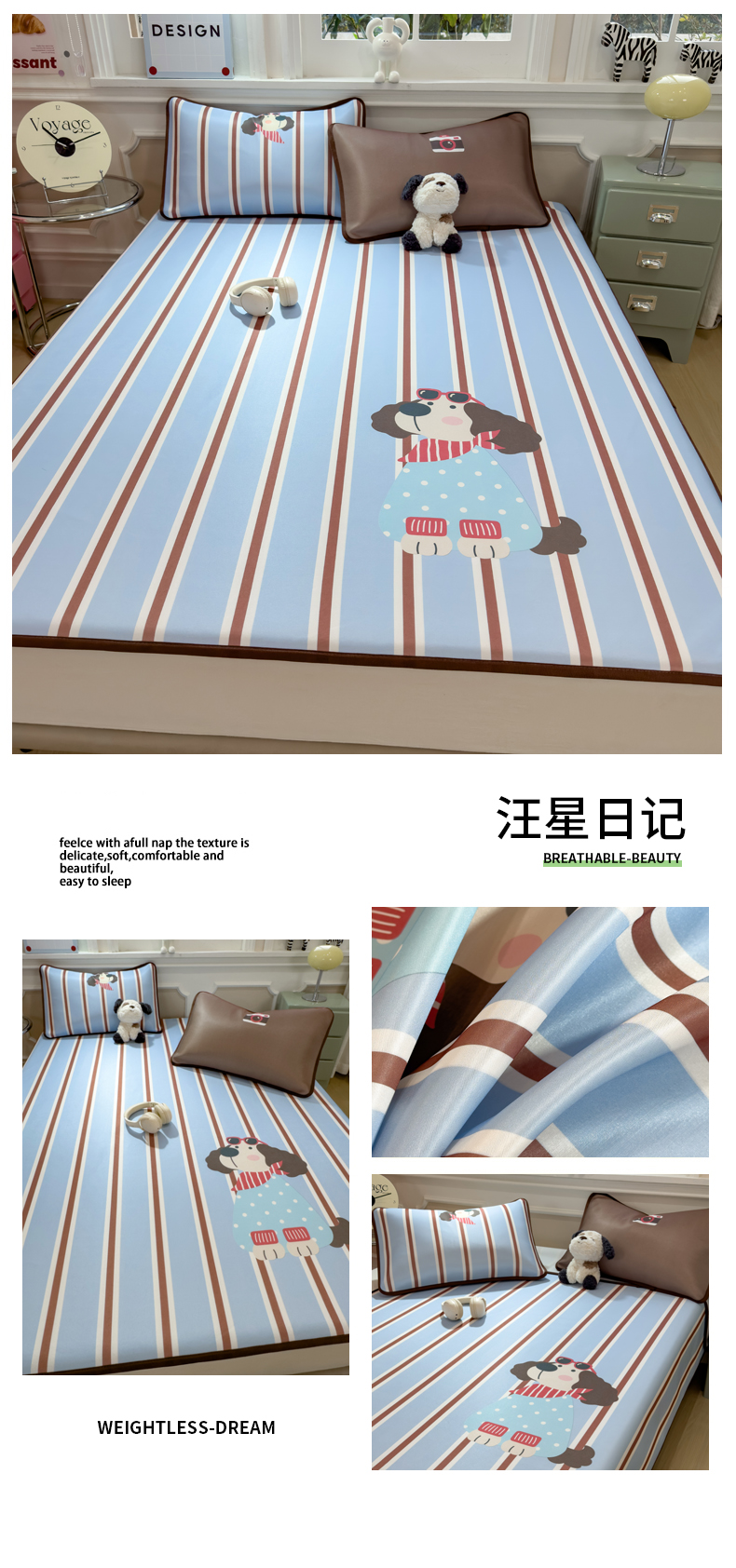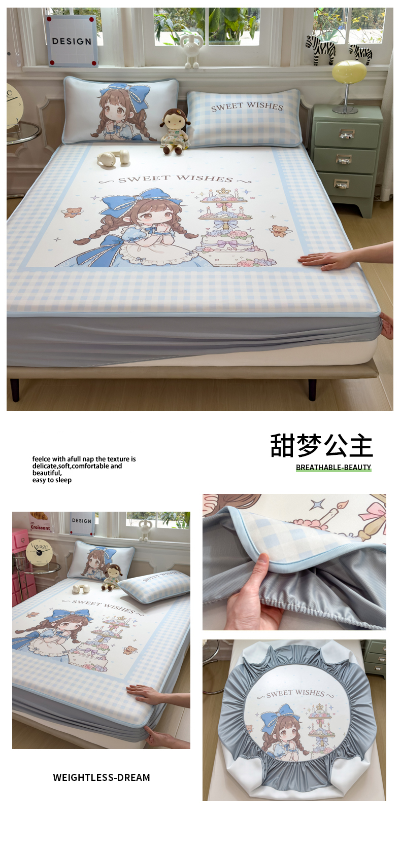 (总)丝羽坊 2026新款高密凉感丝印花乳胶凉席-床笠款,雾蓝花影,萌宠拼格,粉黛萌兔,格纹蝶影,奶白萌犬,浅蓝熊趣,糖果猫咪,彩糖点点,林间私语,薄荷甜心,爱的圈圈,春意盎然,奶绿汪仔,小白兔,小企鹅,小兔派对,星月