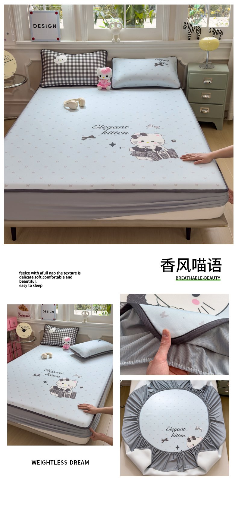 (总)丝羽坊 2026新款小版印花碳光冰丝凉席床笠款,星梦喵屋,蓝花熊语,小甜心,云漫花絮,兔宝,星光灿烂,彩色心愿,春日猫记,蛋糕猫,黑蝴蝶,花甜猫,绿叶,猫叙花间,萌宠甜心,小犬时光,幸运企鹅,叶语