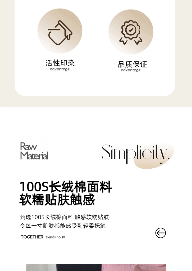 商品名称:乐蔻家纺 2026新款100S长绒棉纯棉素色款四件套 卡其