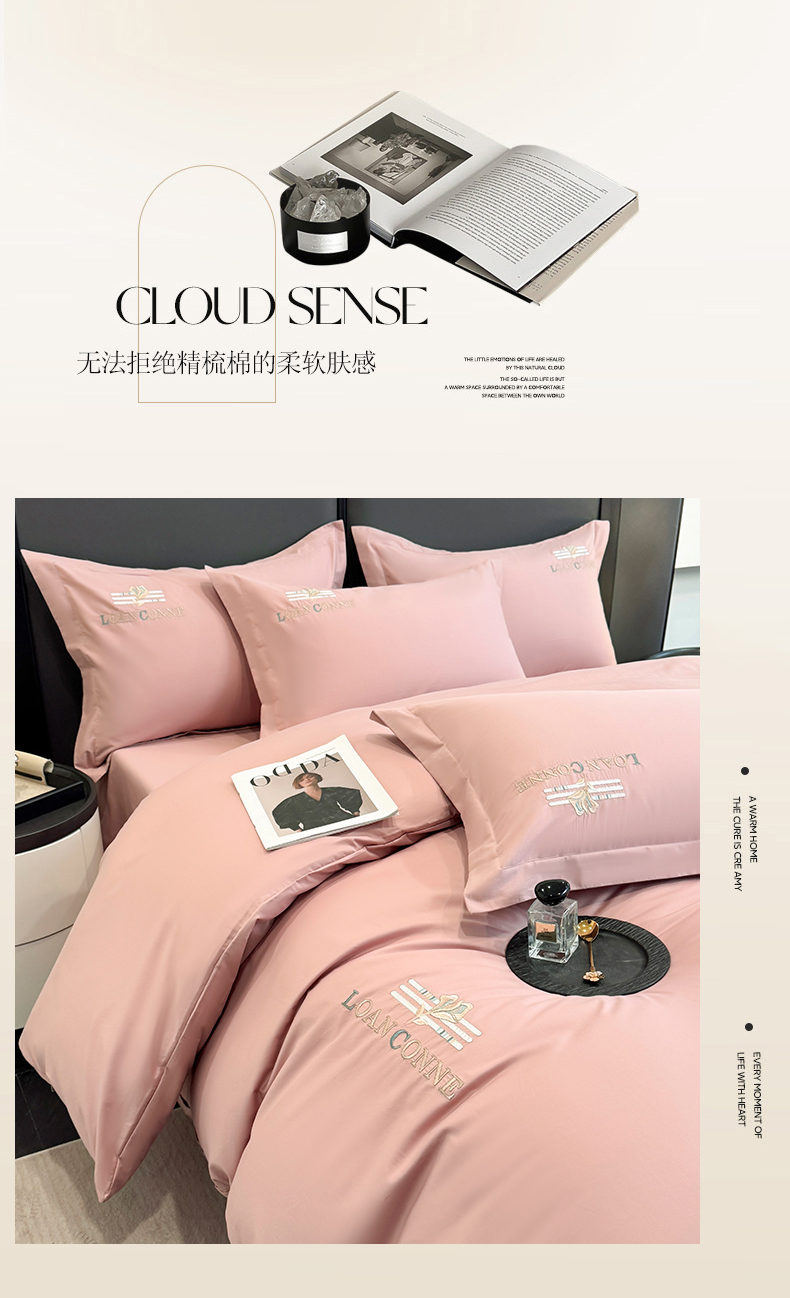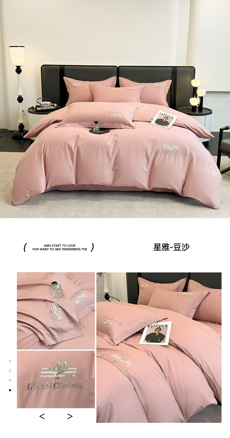 (总)乐蔻家纺 2026新款四季款全棉纯棉绣花四件套,星雅 豆沙,星雅 灰,星雅 金,星雅 咖,星雅 蓝,星雅 绿