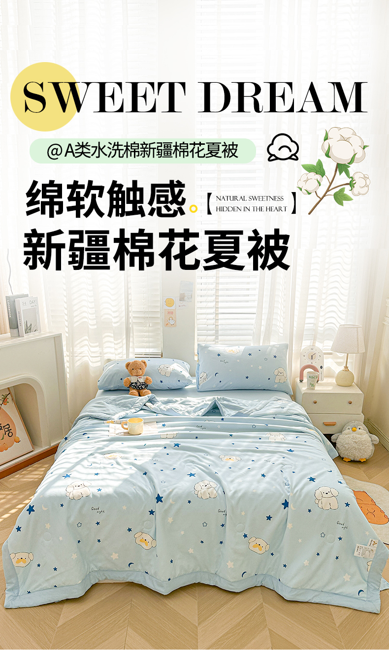 商品名称:晓时候 2026新款小清新印花夏被夏凉被空调被新疆棉花被被子被芯 泡芙狗