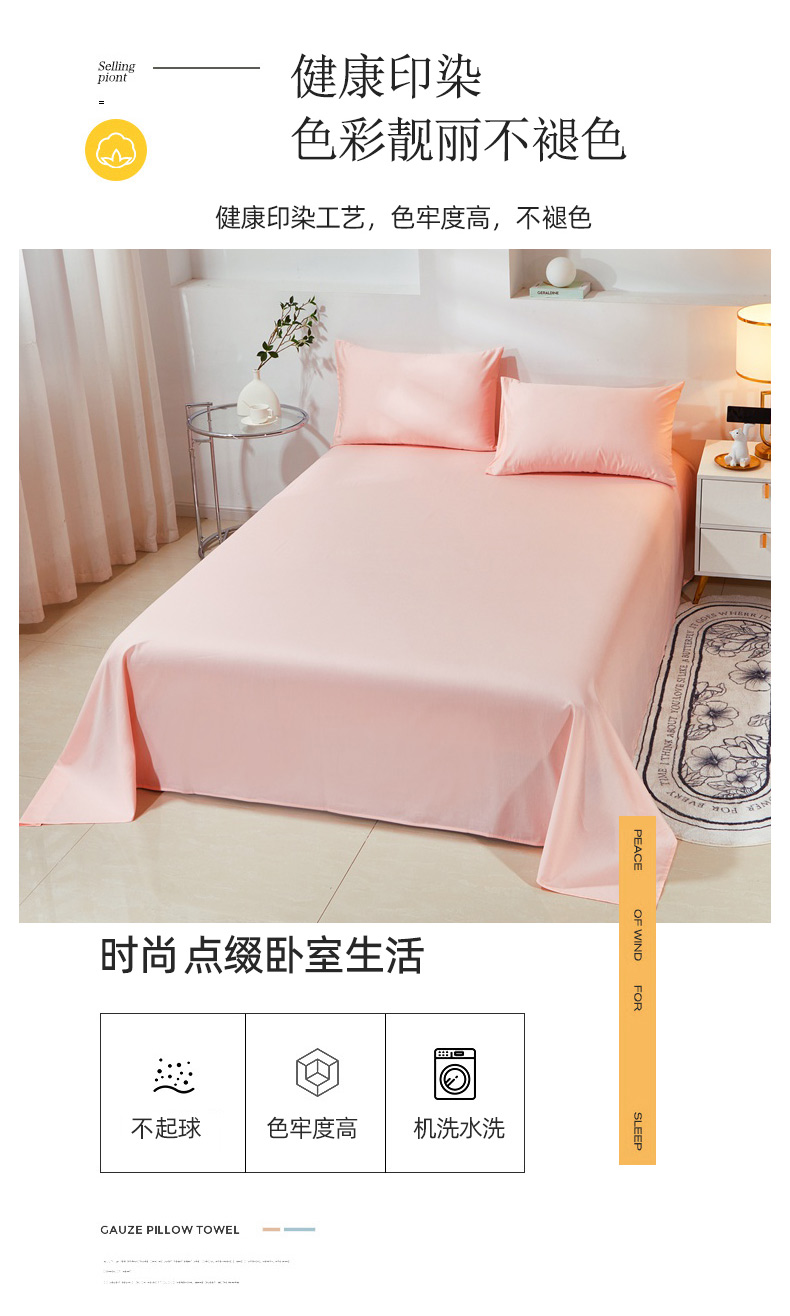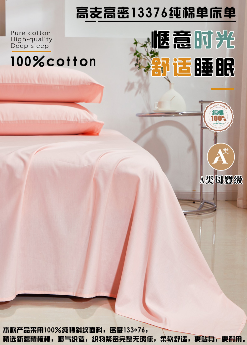 • 91家纺网 家纺一手货源 找家纺 晶缦家纺 2026新款喷气A类全棉13376纯棉斜纹纯色单床单单品床单床单单件 沐朗-粉玉