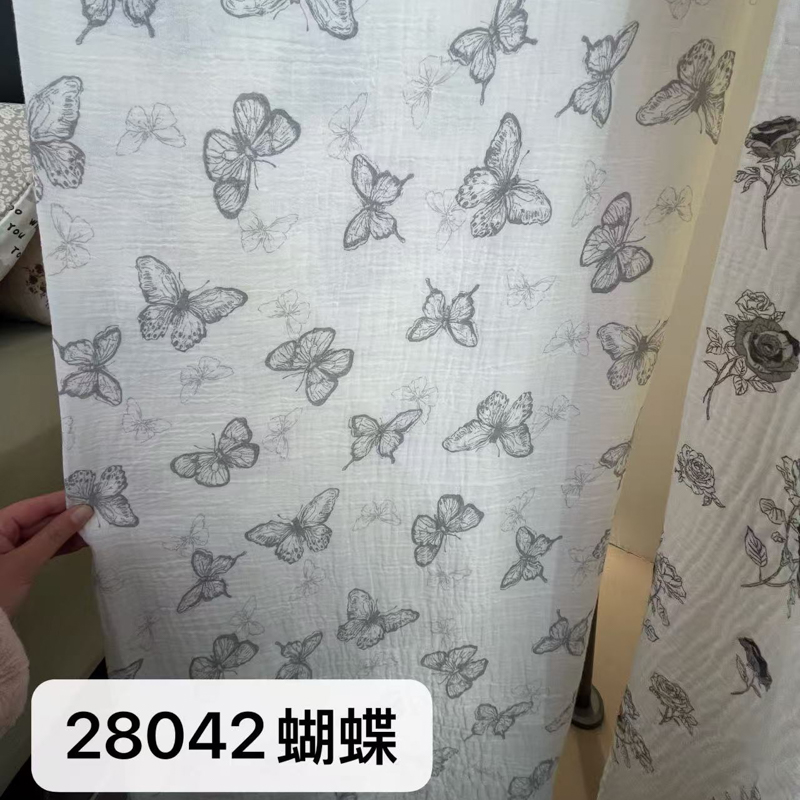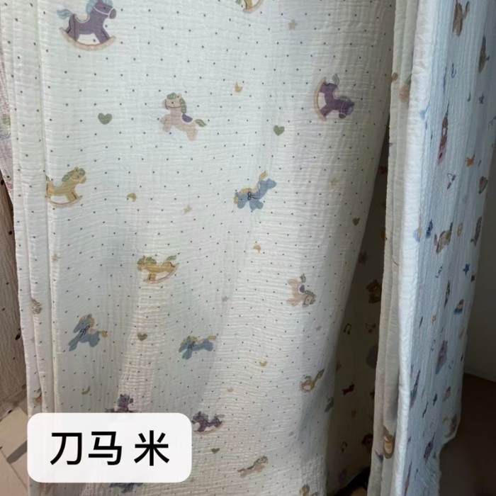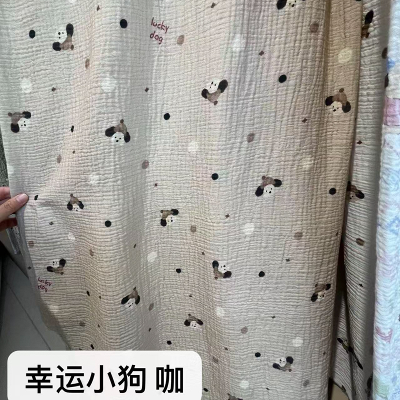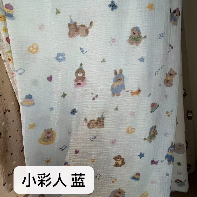 莫兰迪 套件面料全棉皱皱纱印花系列,幸运小狗 咖,刀马 米,青叶雅风,小彩人 蓝,蝴蝶