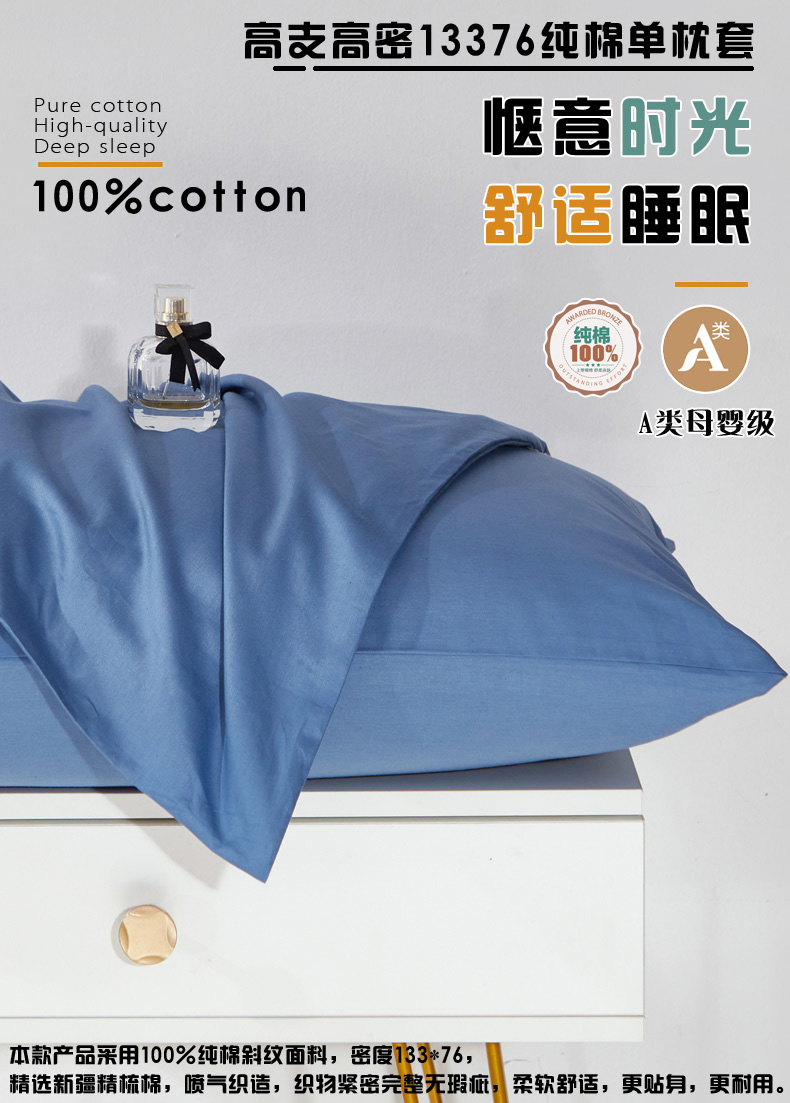 商品名称:晶缦家纺 2026新款喷气A类全棉13376纯棉斜纹纯色单枕套单品枕套枕套单件 沐朗-牛仔蓝