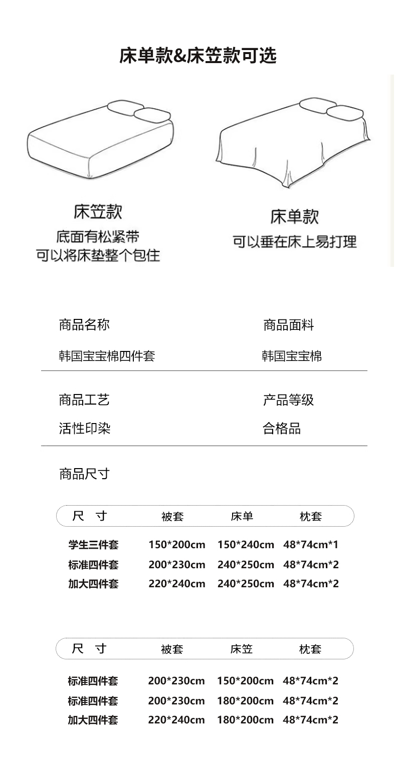 【床笠款】1.8四件套-被套200x230 | ¥55.00 |