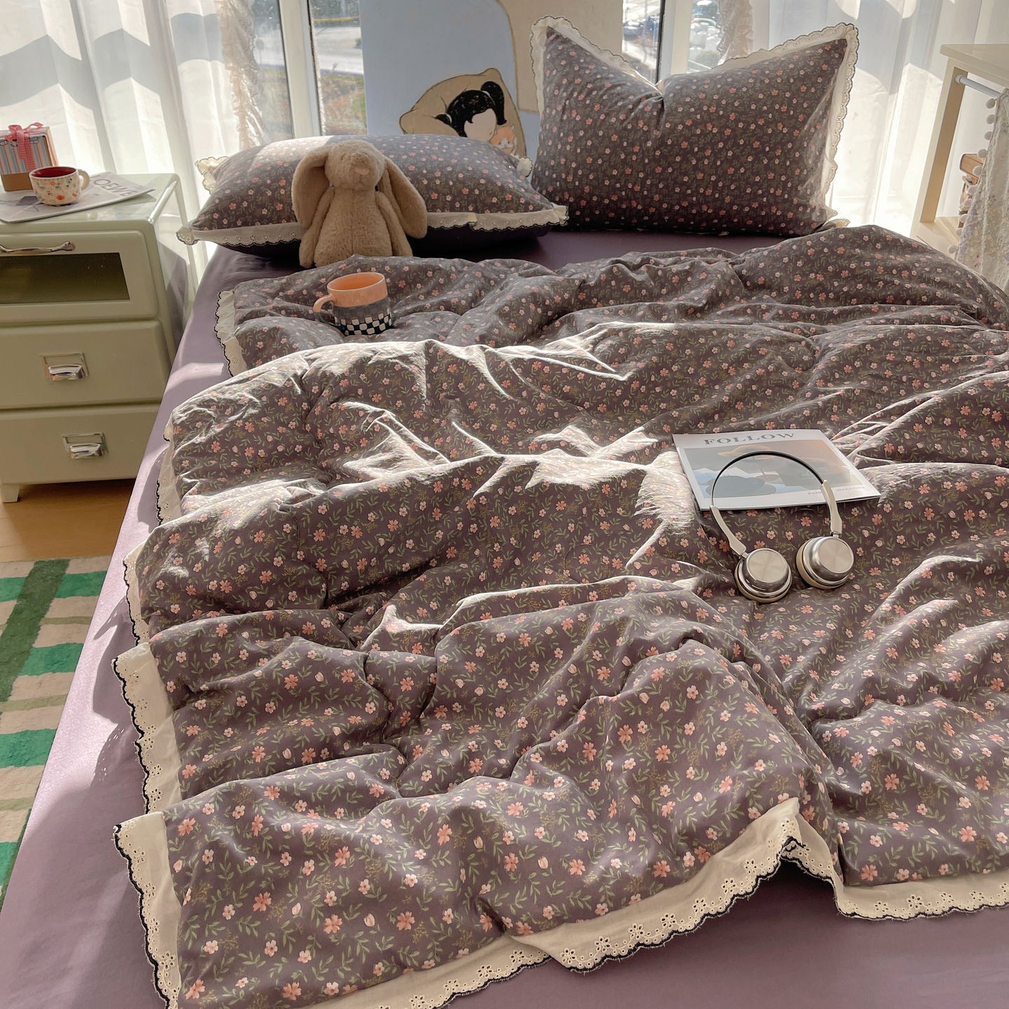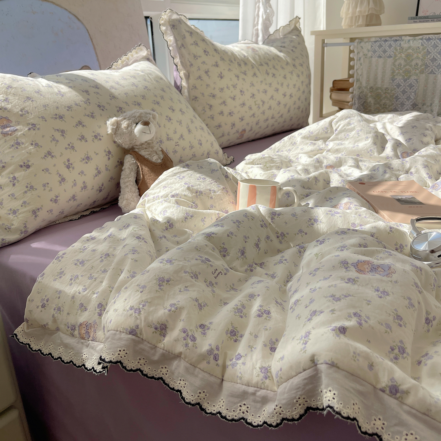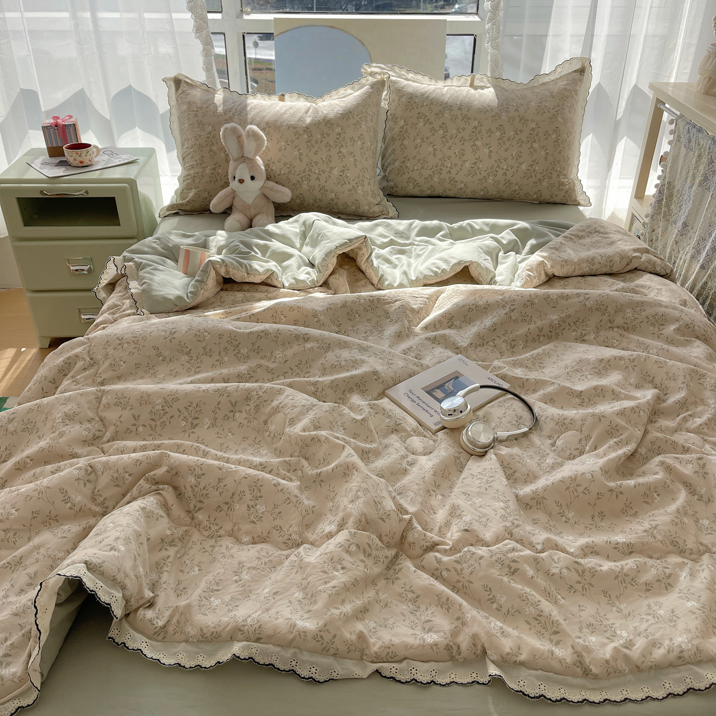 • 91家纺网 家纺一手货源 找家纺 梵克保罗 2026春夏新款10A抗菌全棉黑色花边云朵棉单夏被/夏被四件套空调被 云朵棉-甜囡紫絮