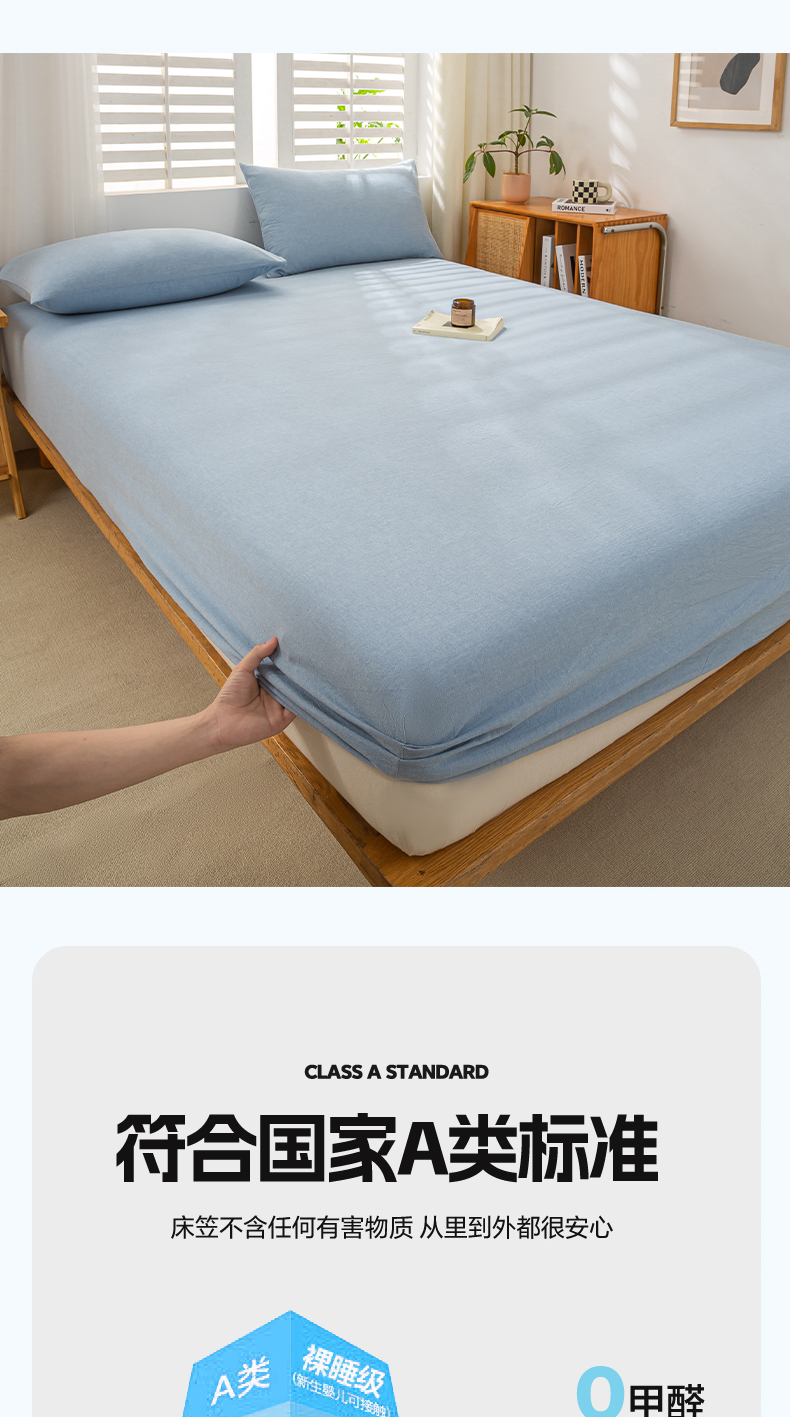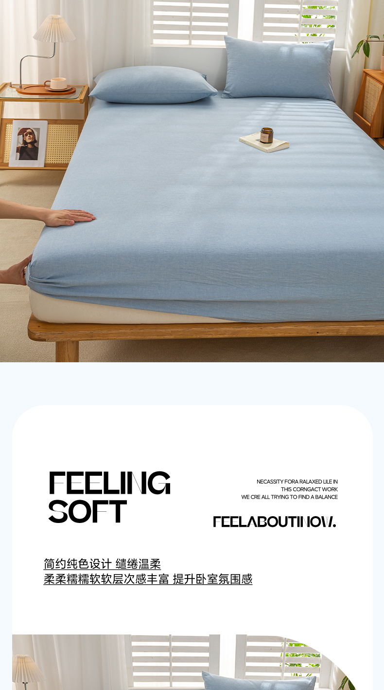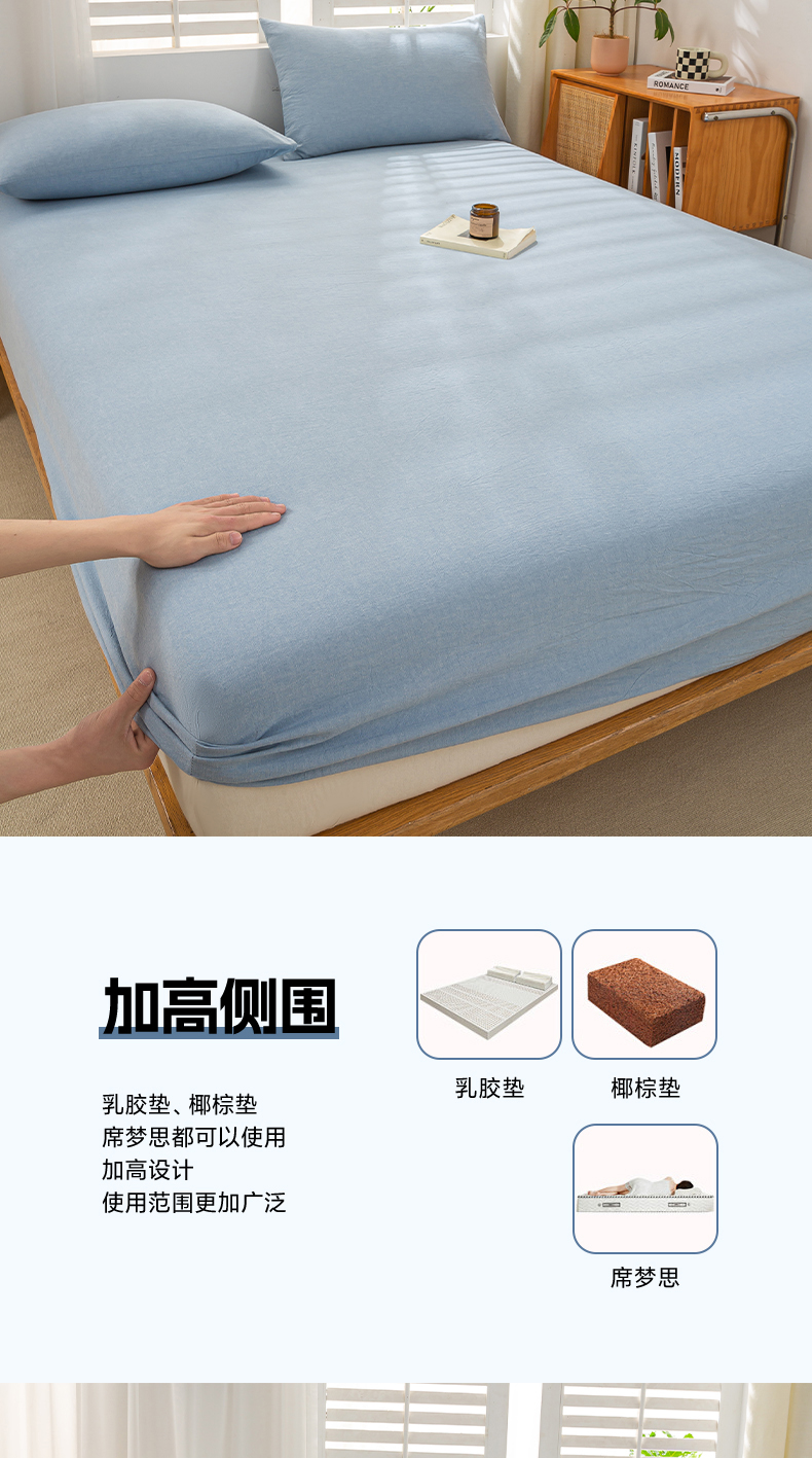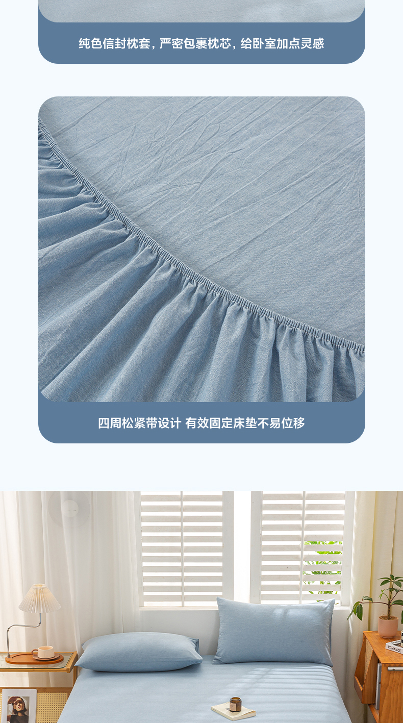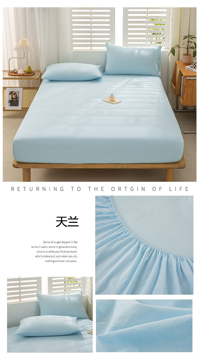 • 91家纺网 家纺一手货源 找家纺 恋人优选 2026新款全棉纯棉水洗棉单床笠床笠单件 浅蓝