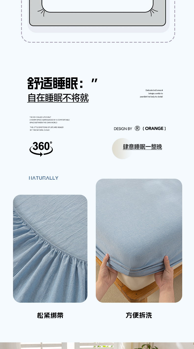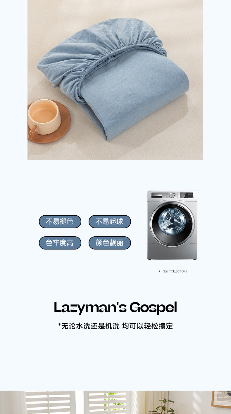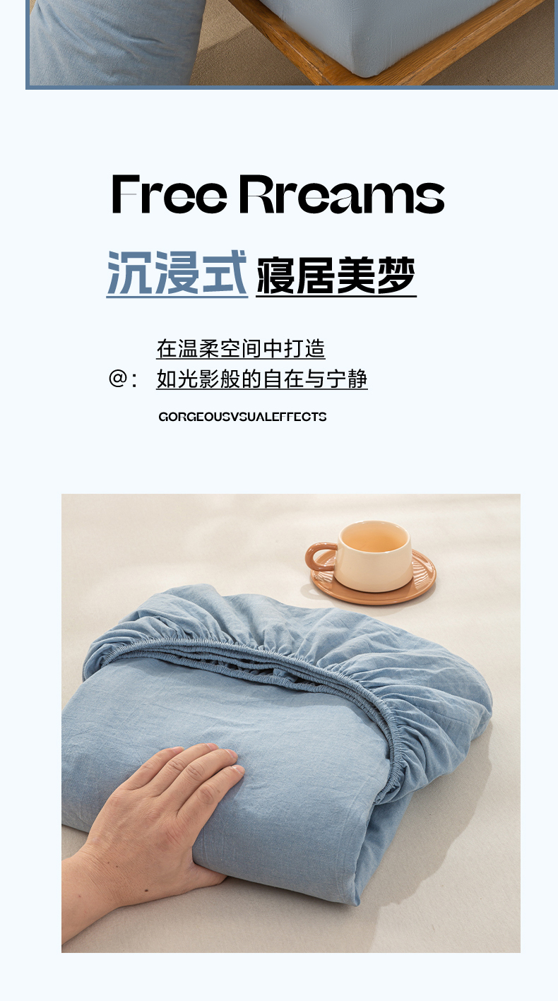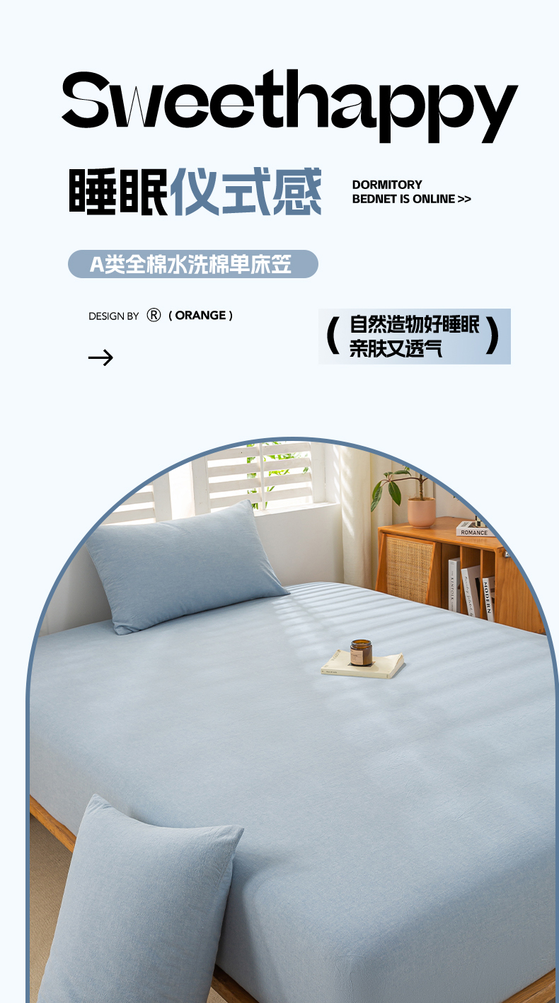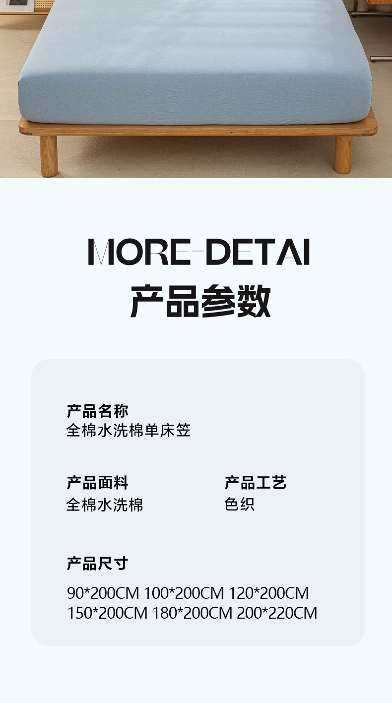 • 91家纺网 家纺一手货源 找家纺 恋人优选 2026新款全棉纯棉水洗棉单床笠床笠单件 浅蓝