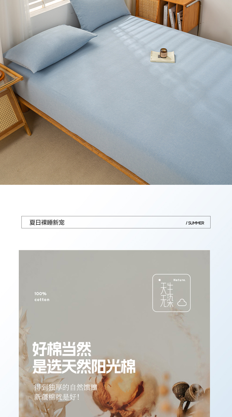 恋人优选 2026新款全棉纯棉水洗棉单床笠床笠单件 浅蓝