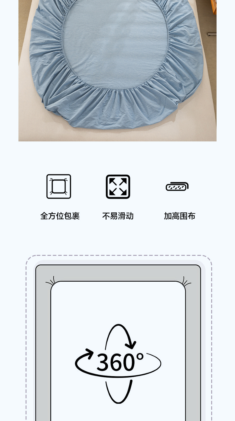 当前位置: 91家纺网 > 商品网购 > 床上用品 > 床笠 > 恋人优选 2026新款全棉纯棉水洗棉单床笠床笠单件 浅蓝