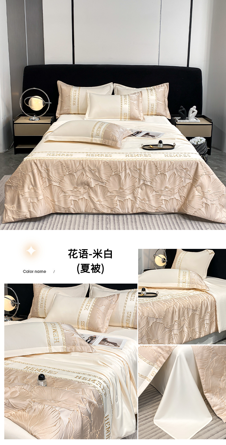 商品名称:子曰 2026新款浮雕水洗真丝夏被四件套 花语-米白