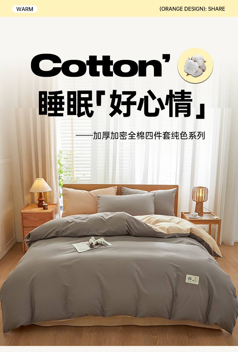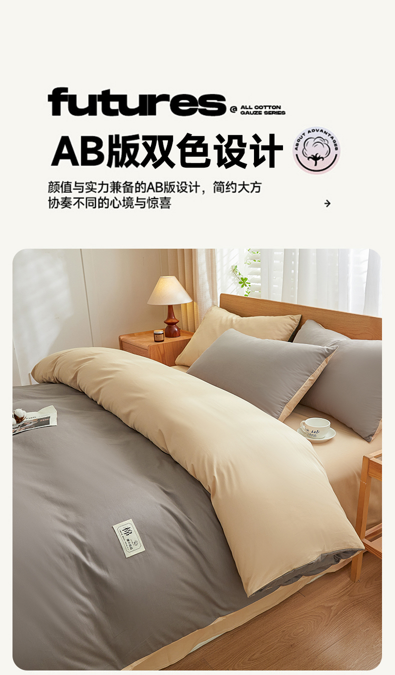 当前位置: 91家纺网 > 商品网购 > 床品套件 > 四件套 > 全棉普通四件套 > 恋人优选 2026新款40支13070全棉纯棉四件套 浅灰+卡其