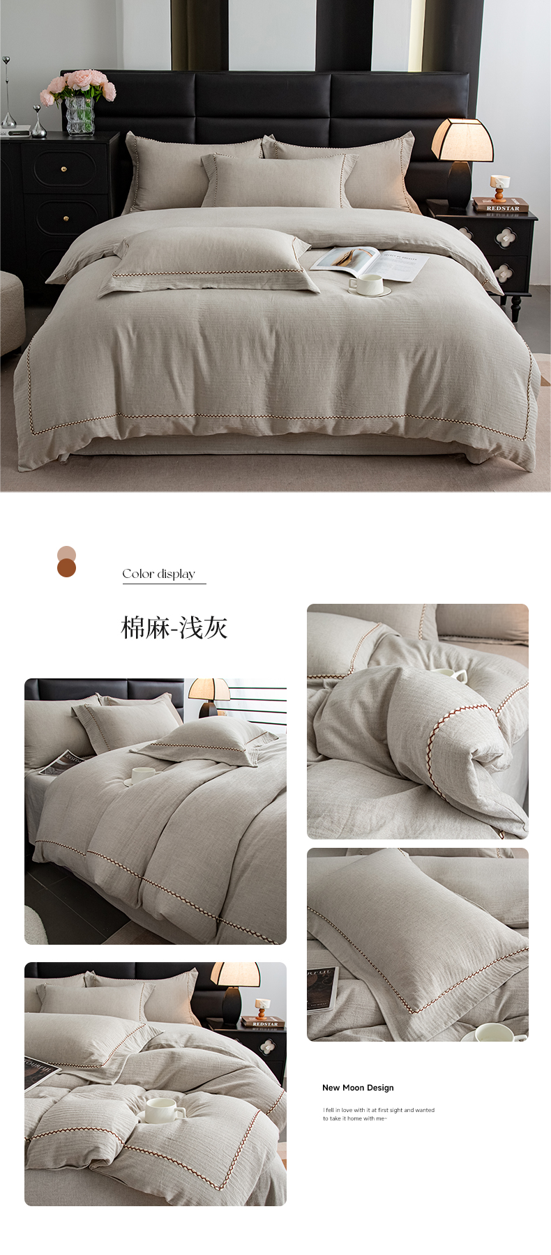 当前位置: 91家纺网 > 商品网购 > 床品套件 > 四件套 > 其它四件套 > 慕梵家居 2026春夏新款全棉棉麻简约纯色系列四件套-棉麻 棉麻-浅灰