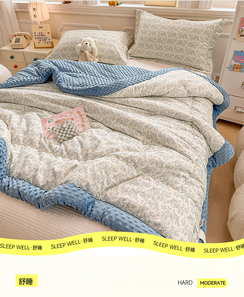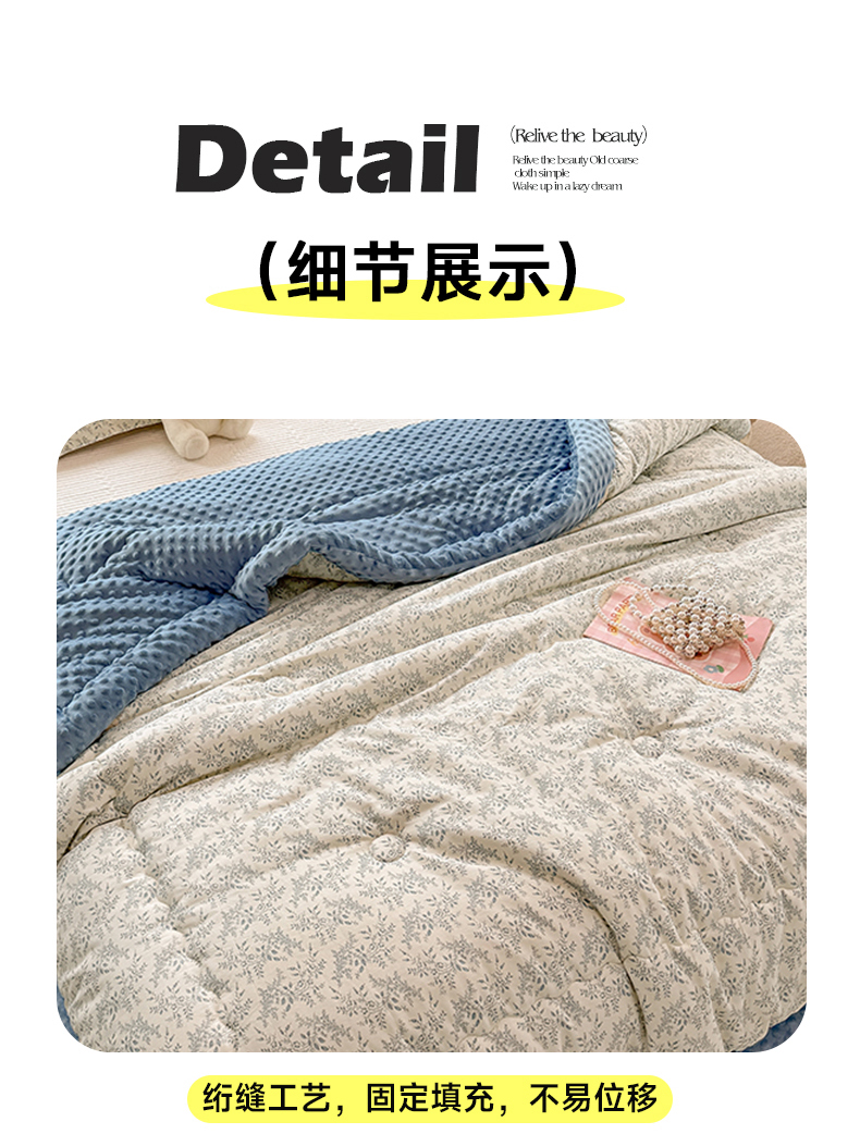 当前位置: 91家纺网 > 商品网购 > 被子 > 冬被 > 梦依依 2026新款A类全棉豆豆绒大豆被冬被春秋被豆豆被子被芯 瑞莎-蓝