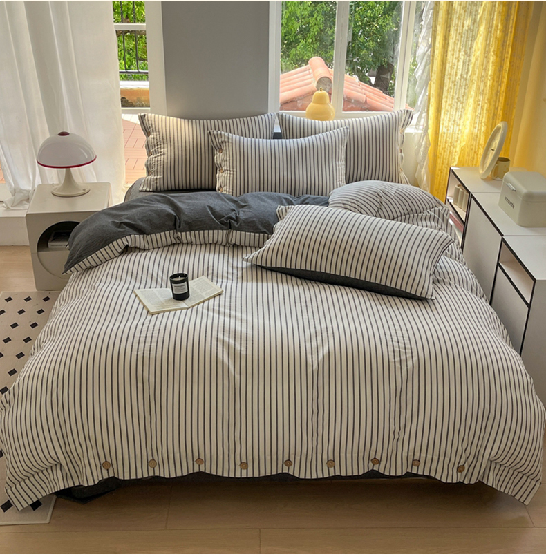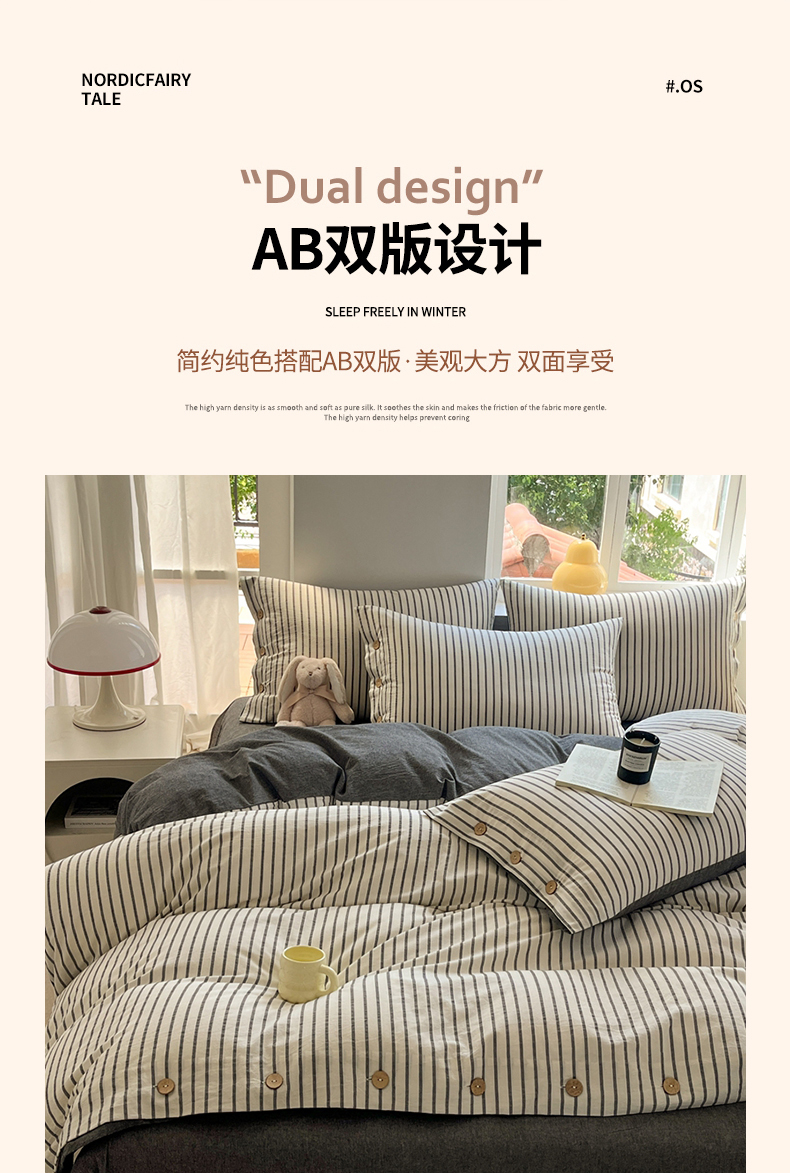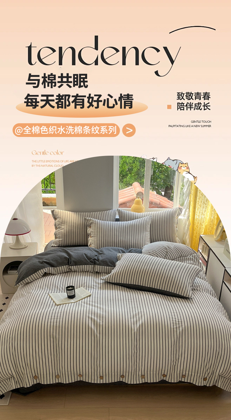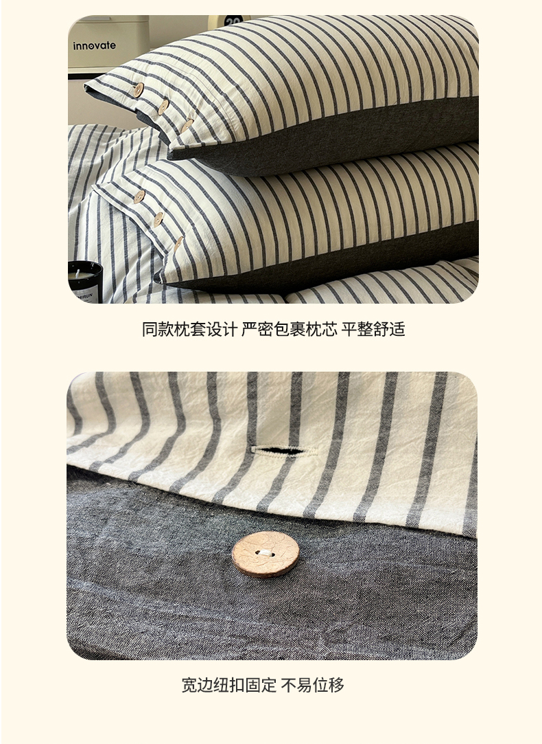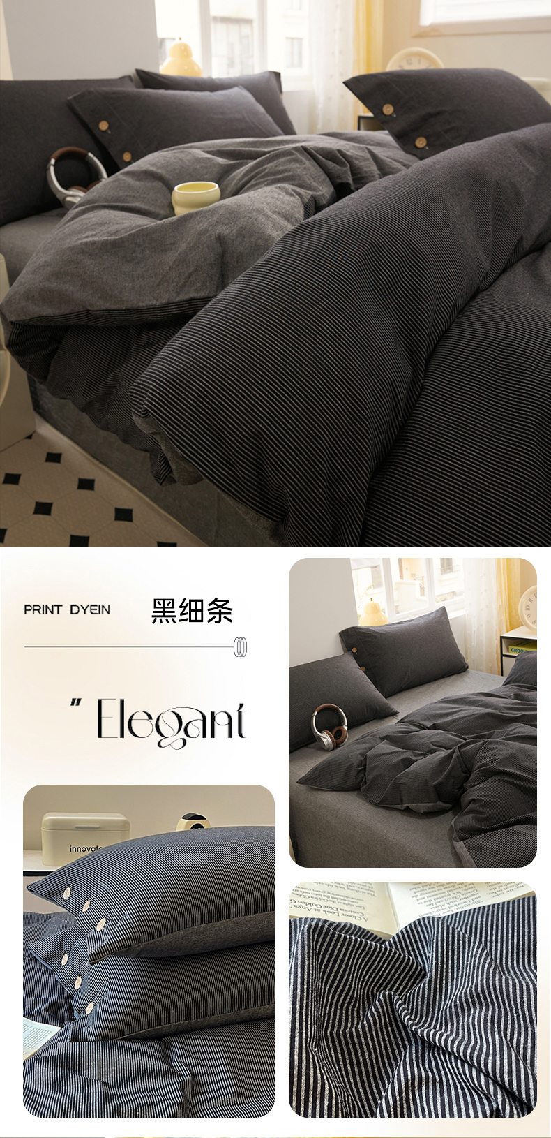 (总)梦依依 2025新款全棉色织水洗棉纽扣款四件套学生三件套全棉纯棉三件套,粉苏条,黑苏条,蓝苏条,绿苏条,米细条,黑细条,灰细条