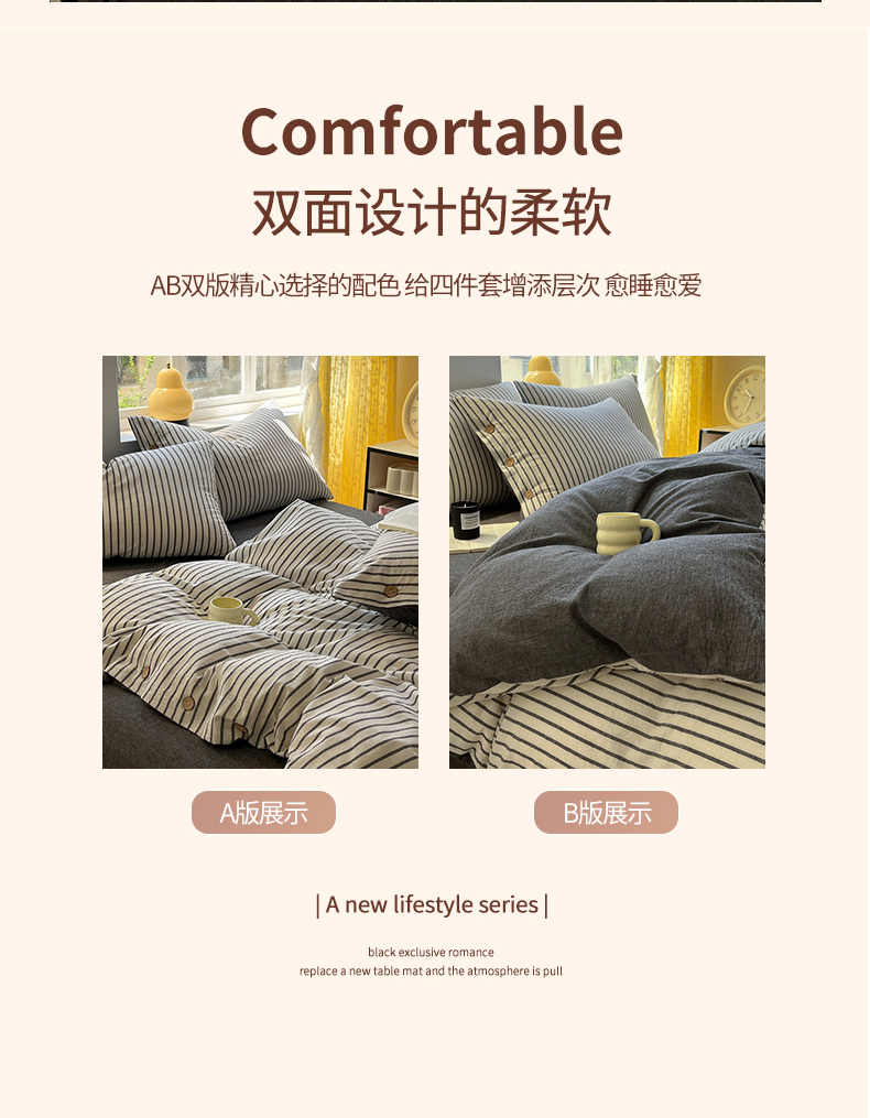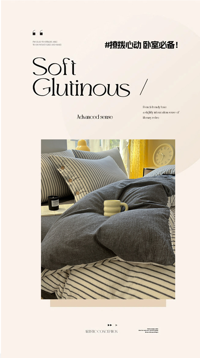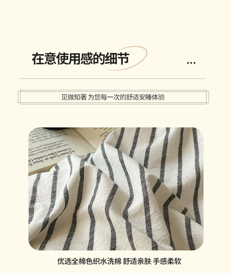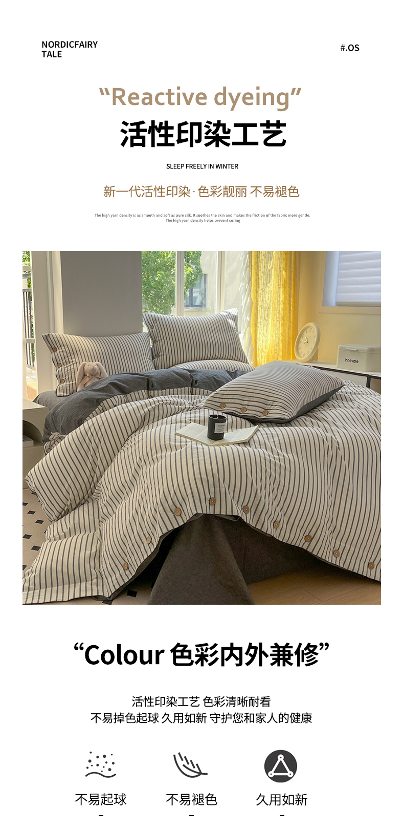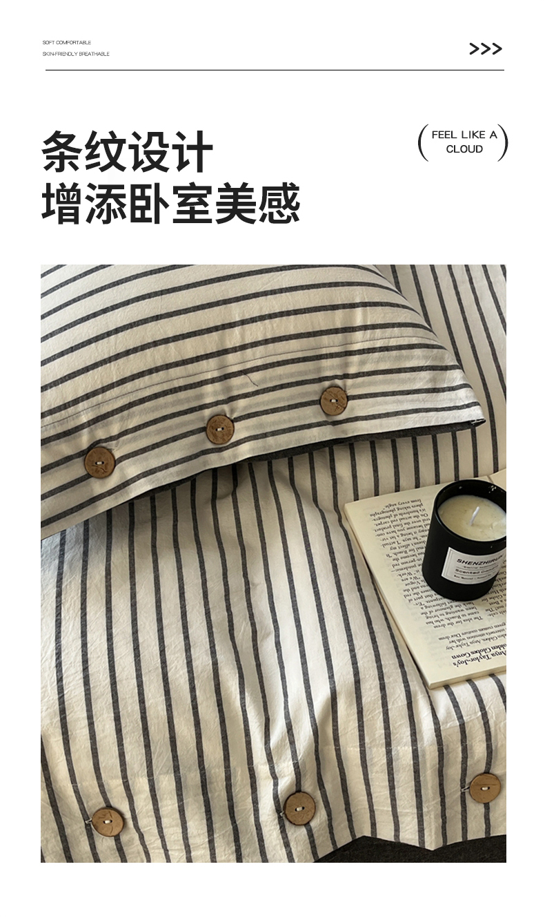 (总)梦依依 2025新款全棉色织水洗棉纽扣款四件套学生三件套全棉纯棉三件套,粉苏条,黑苏条,蓝苏条,绿苏条,米细条,黑细条,灰细条