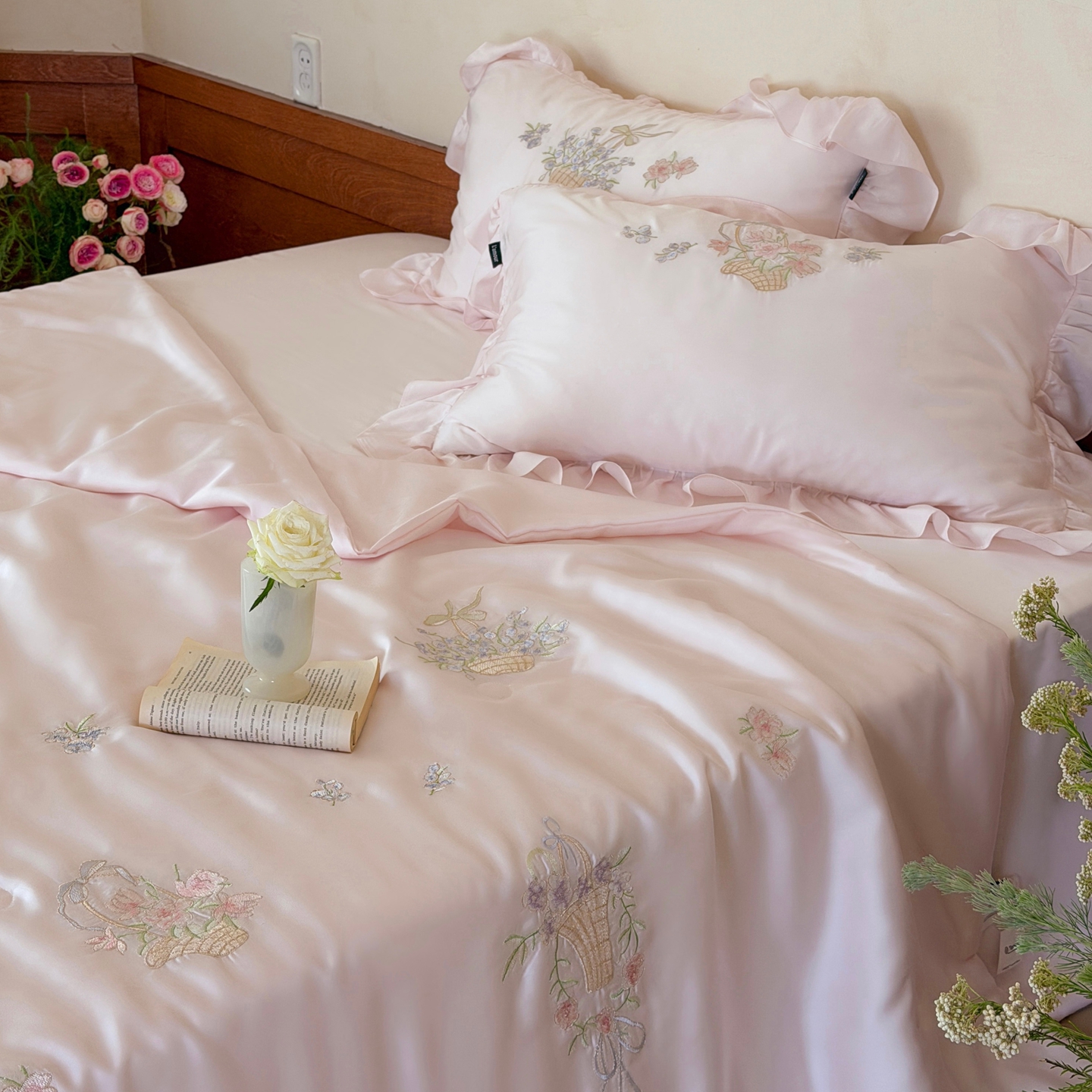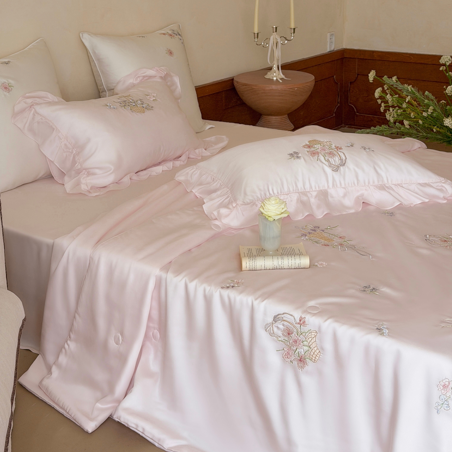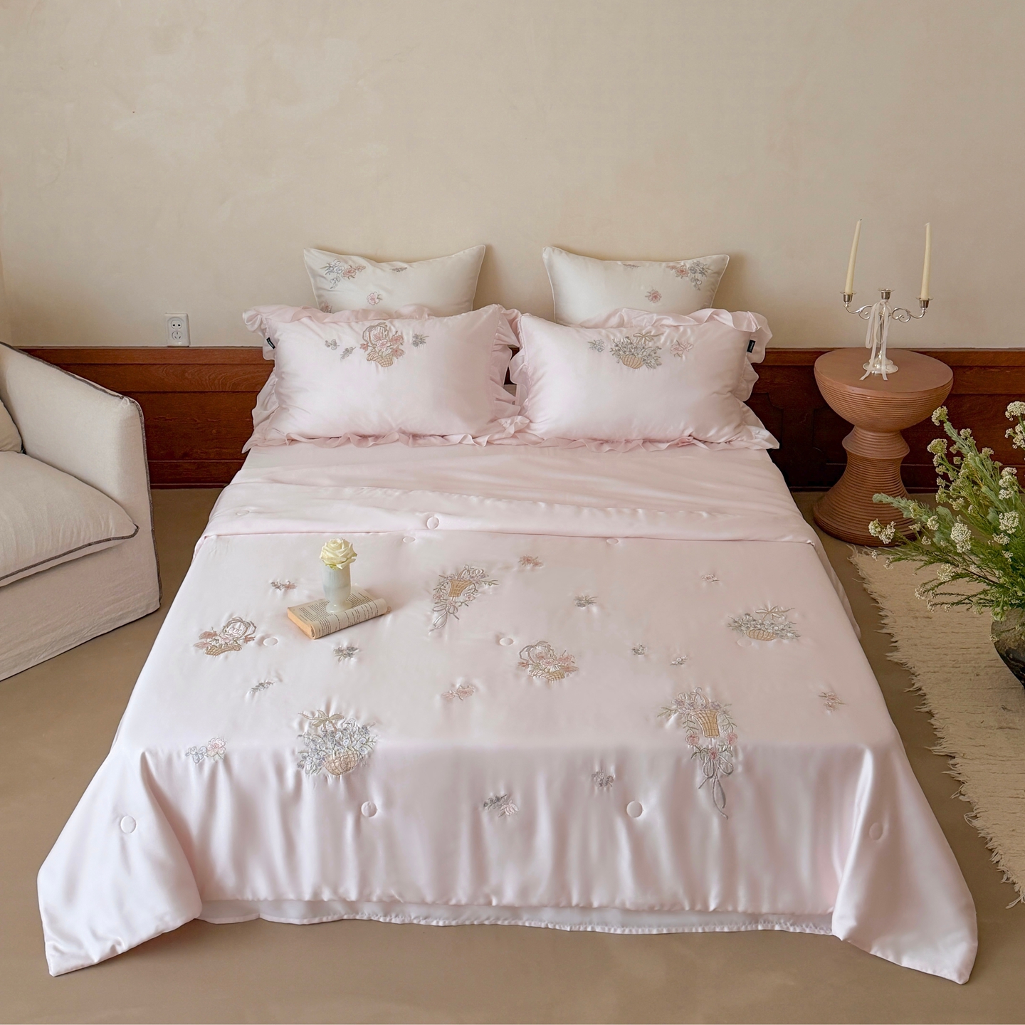 • 91家纺网 家纺一手货源 找家纺 (总)鹿班家居 2026新款60S兰精天丝刺绣夏被系列-花姿(标准会员-20元),藕丝粉,米灰色