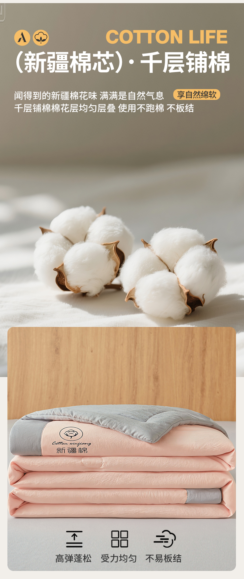 晓时候 2026新款无印风水洗棉新疆棉花被夏被夏凉被空调被子 素夏-粉灰
