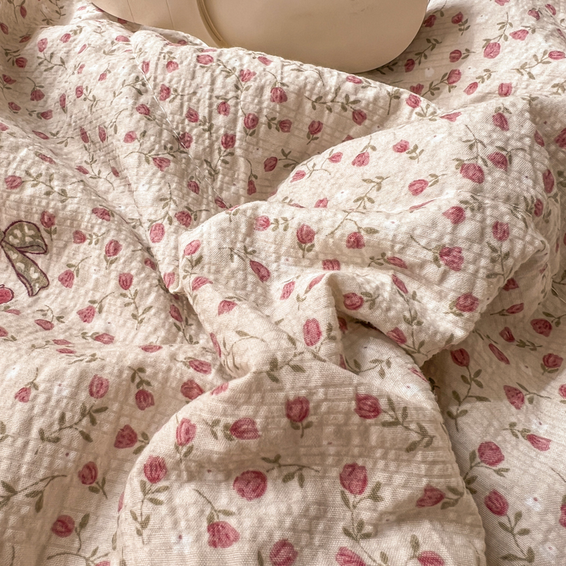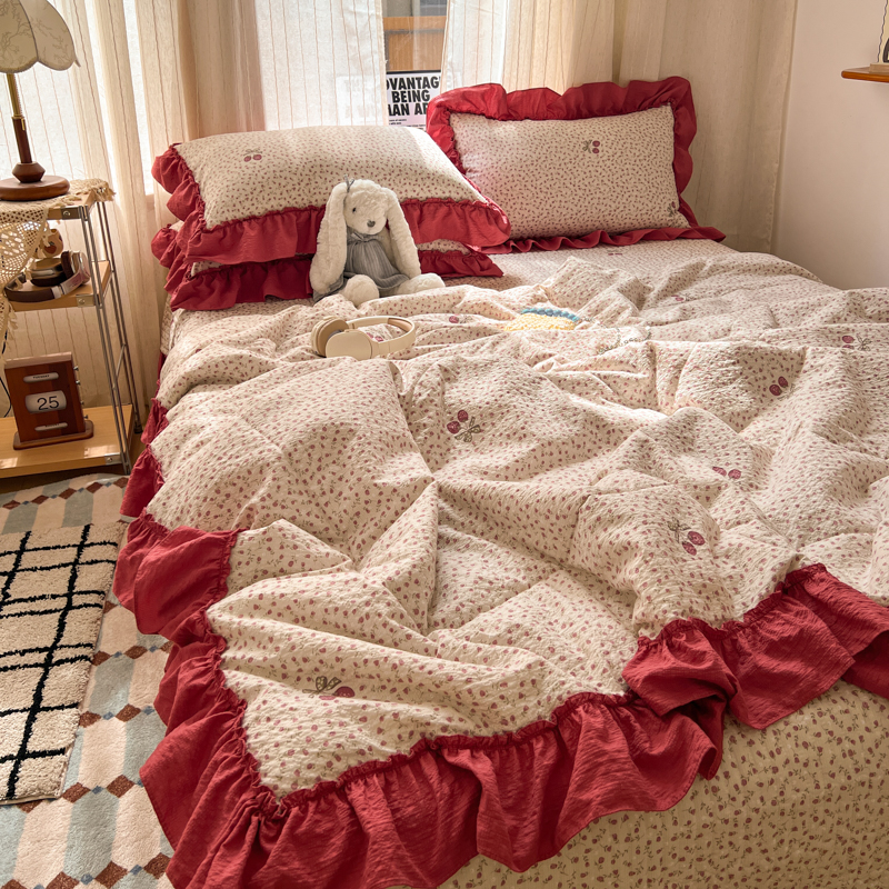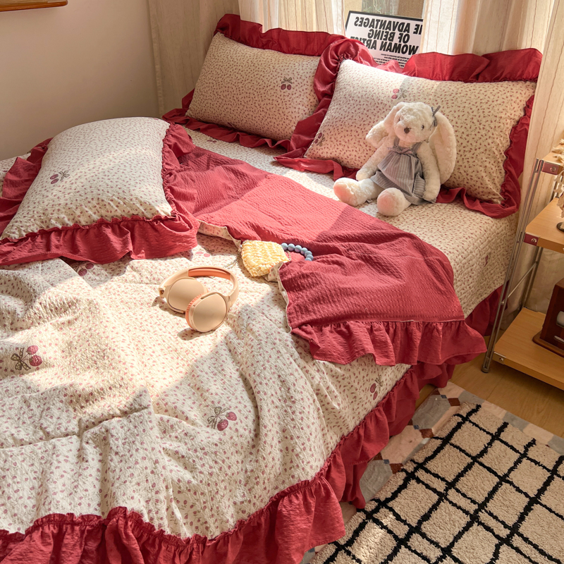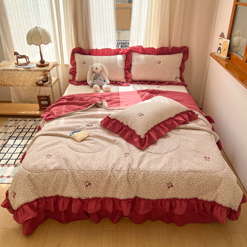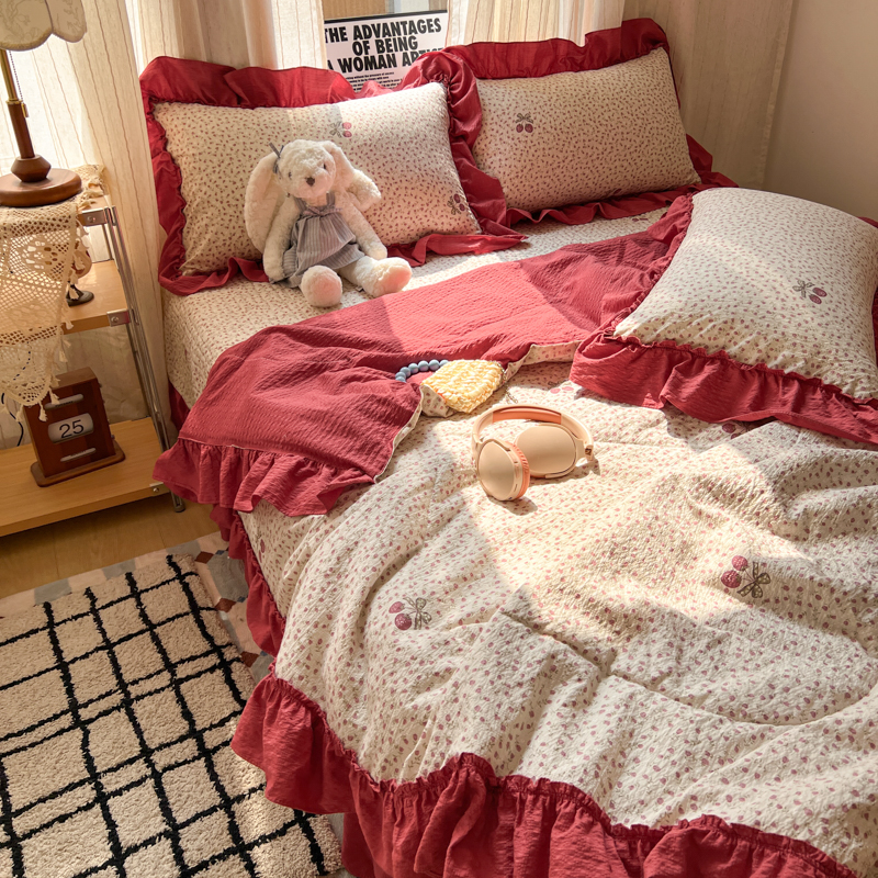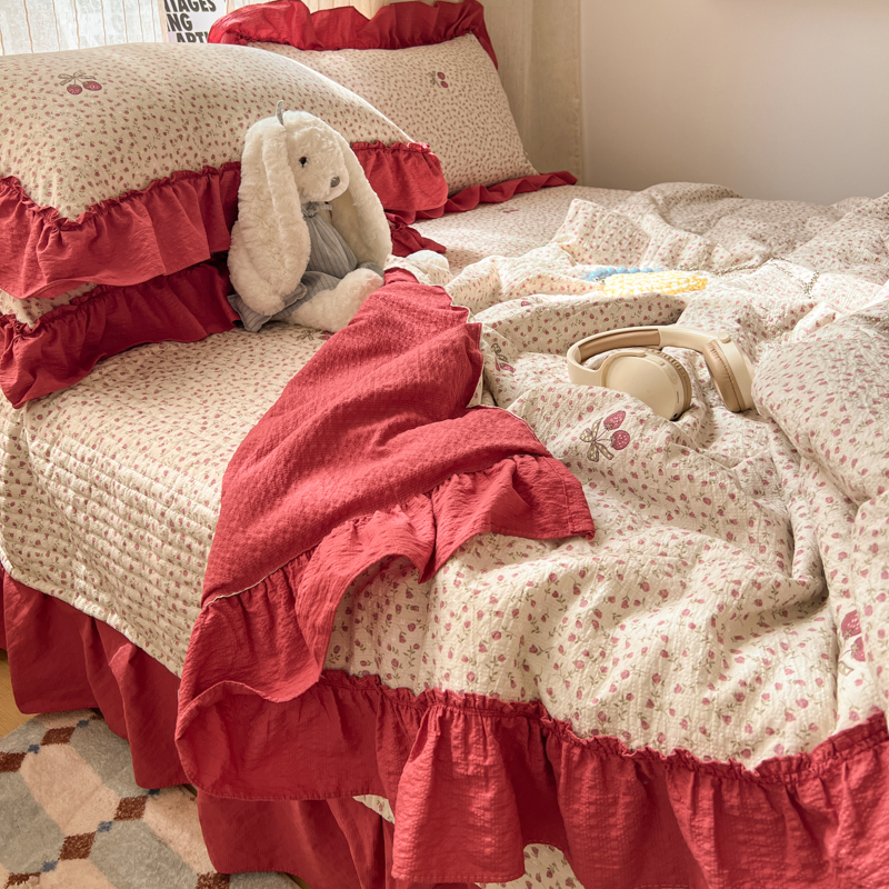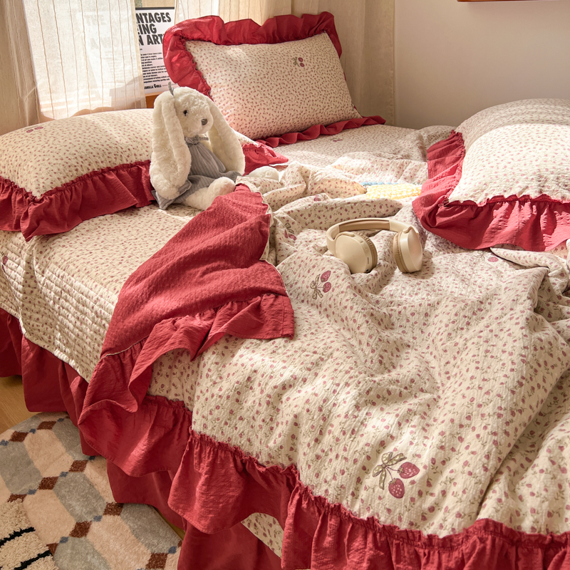 商品名称:欧尚 2026新款床盖款花边夏被四件套 莓系花伐