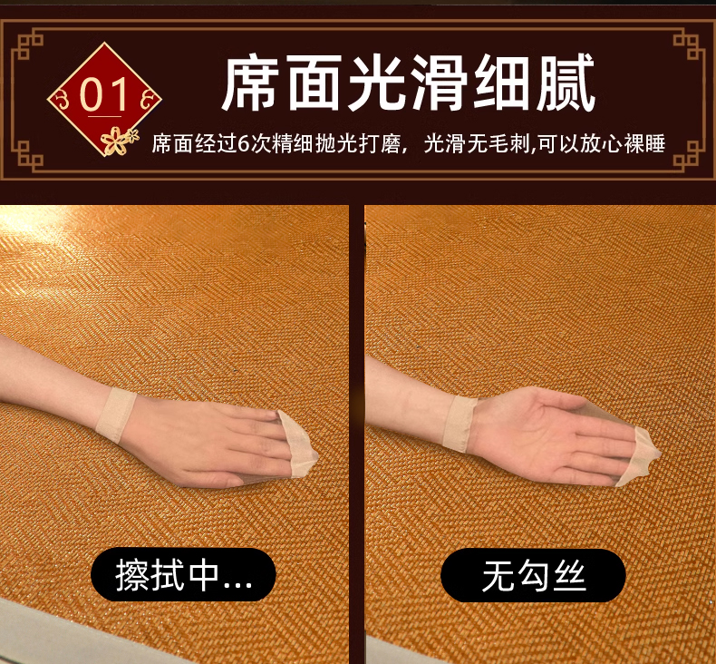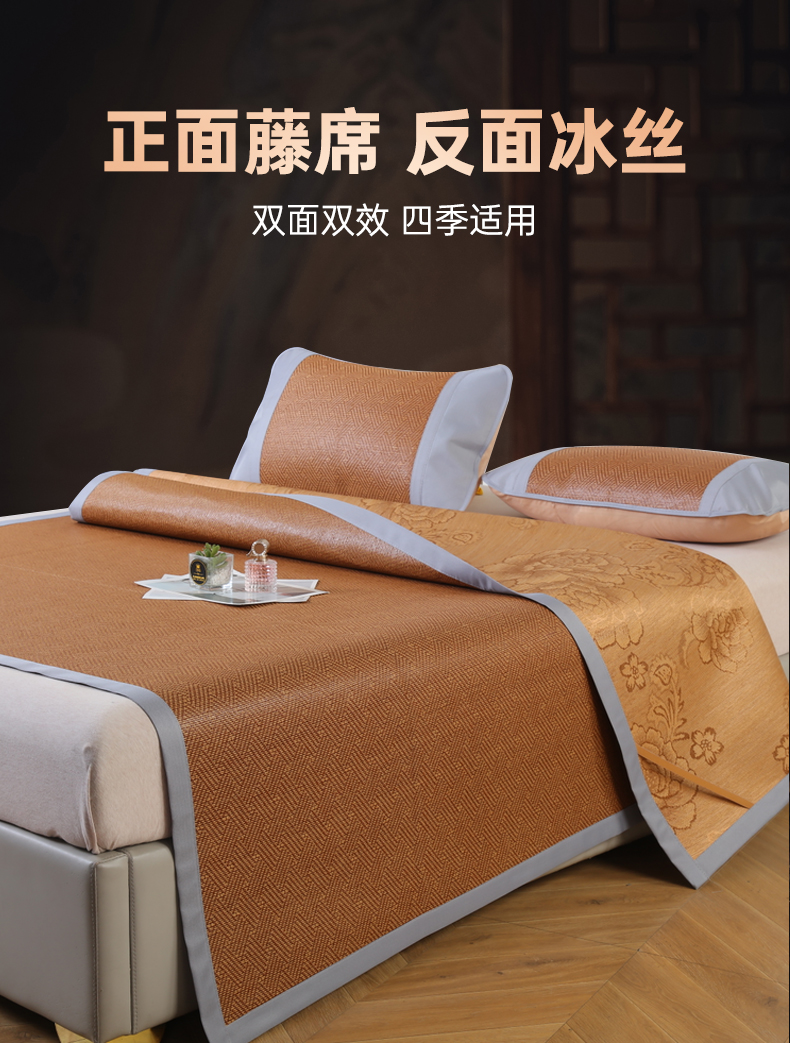 商品名称:步步高席业 2026新款天然藤席冰丝席-双面藤席 饼干花