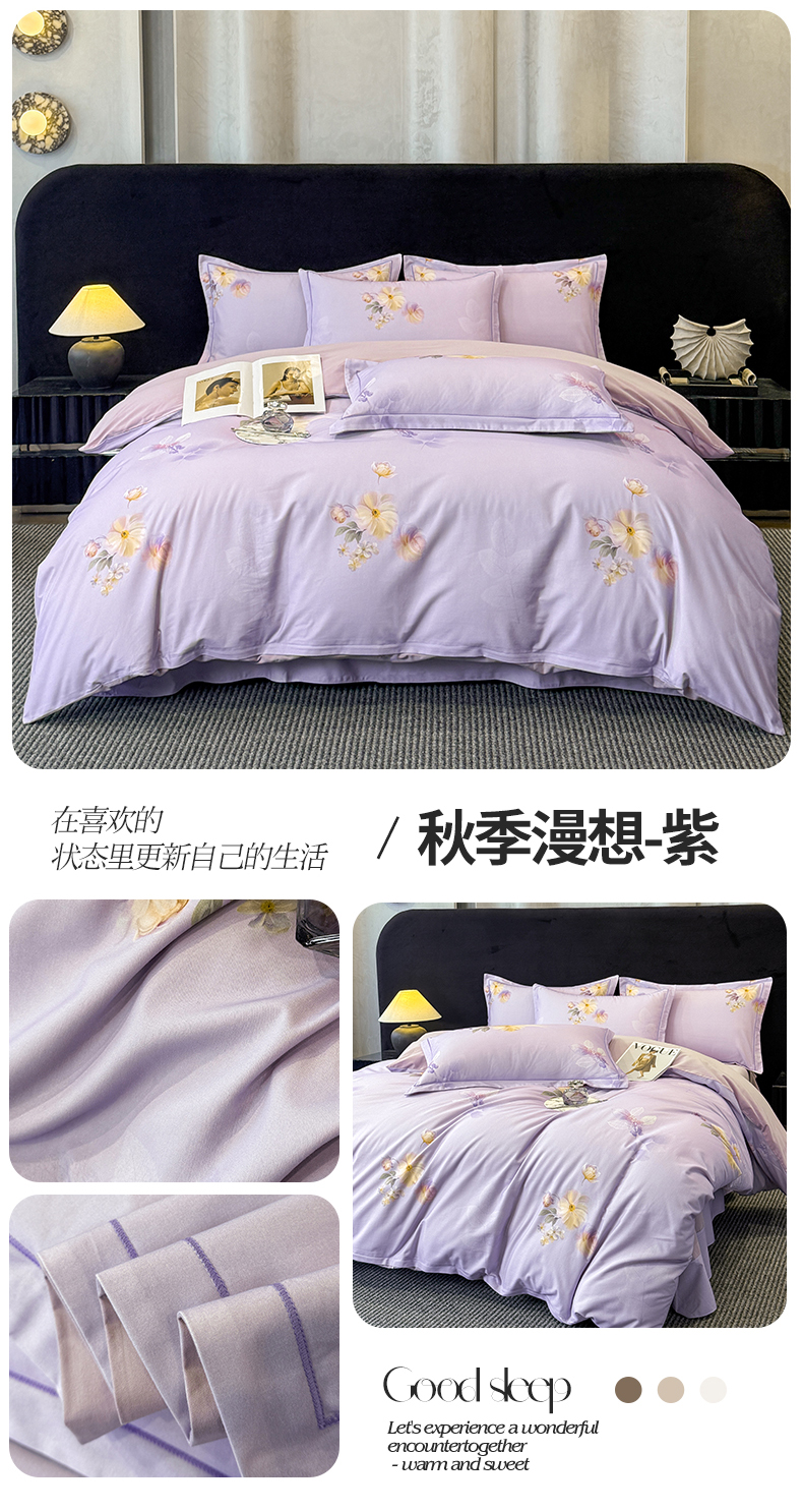 商品名称:喜四方 2026新款100%全棉60支长绒棉数码印花四件套(控价不低于180)秋季漫想-紫