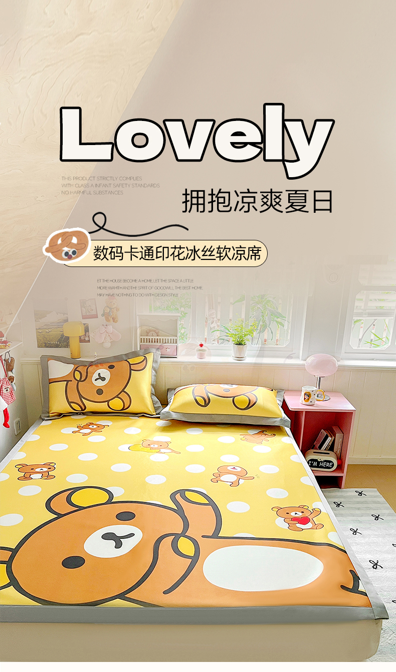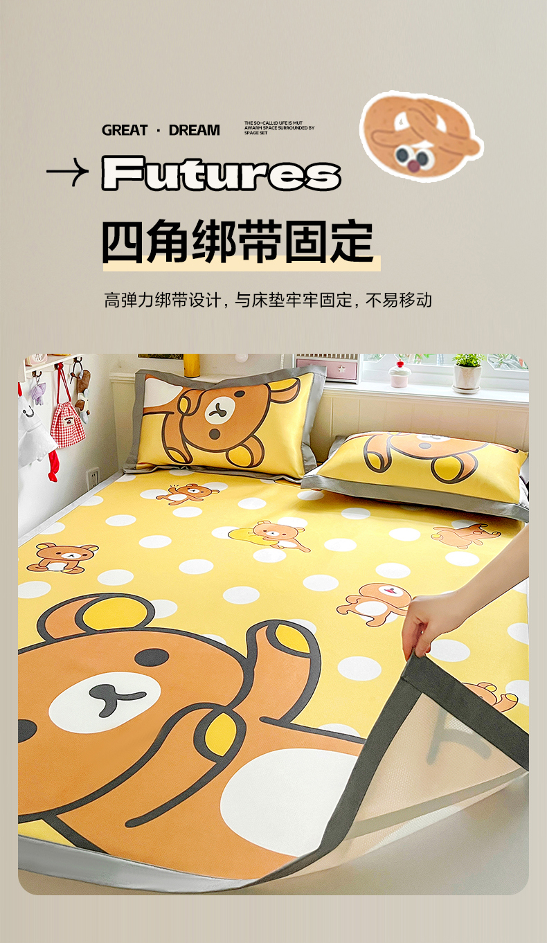 (总)KT猫直营店 2026新款数码卡通印花凉感冰丝软凉席席子,波点熊-席,登月叮当黄-席,登月叮当蓝-席,飞行汪-席,懒懒熊-席,晚安小星-席,小确幸-席,星星人派对-席,星芽芽-席,星仔面包铺-席,眼镜狗-席