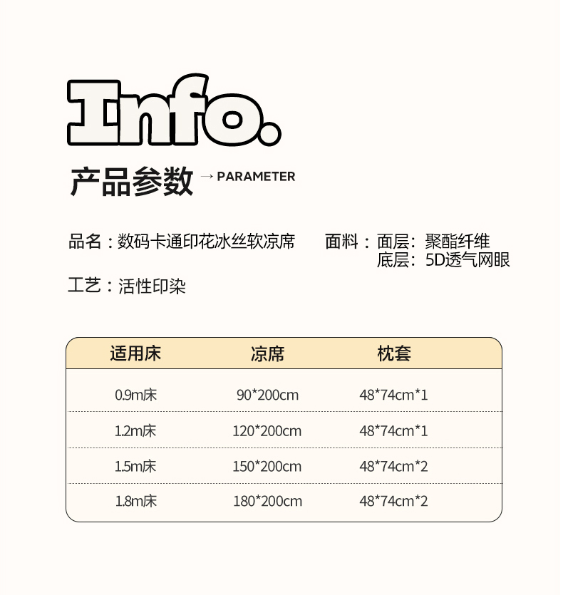 商品名称:KT猫直营店 2026新款数码卡通印花凉感冰丝软凉席席子 波点熊-席