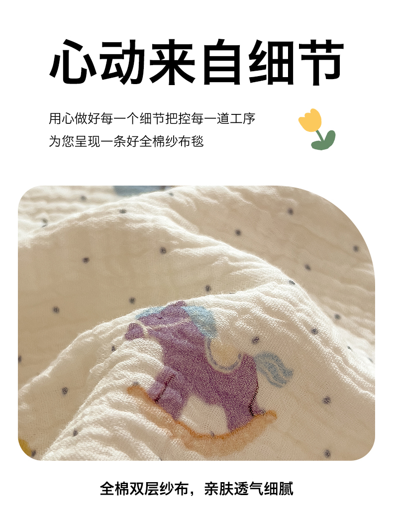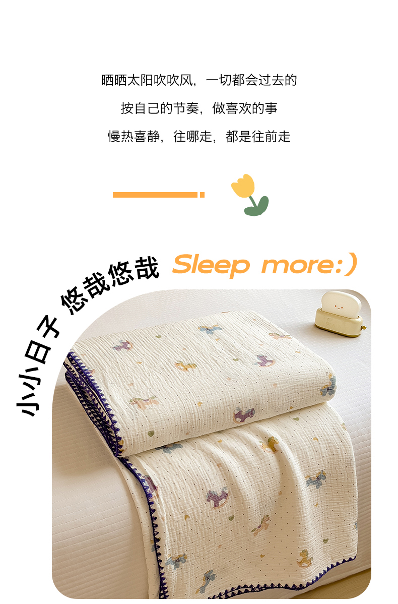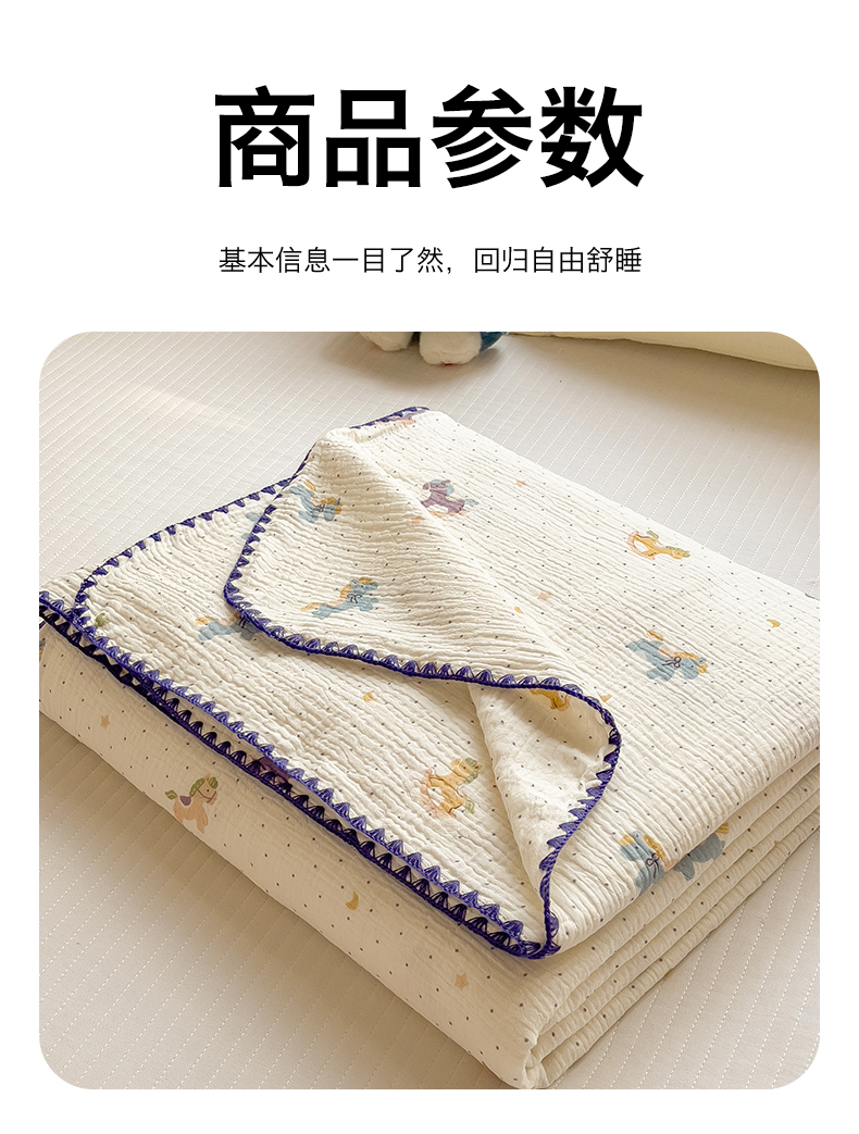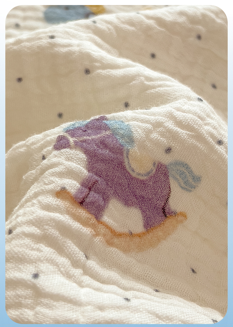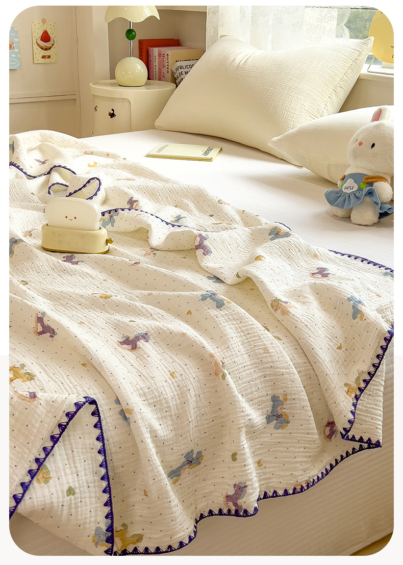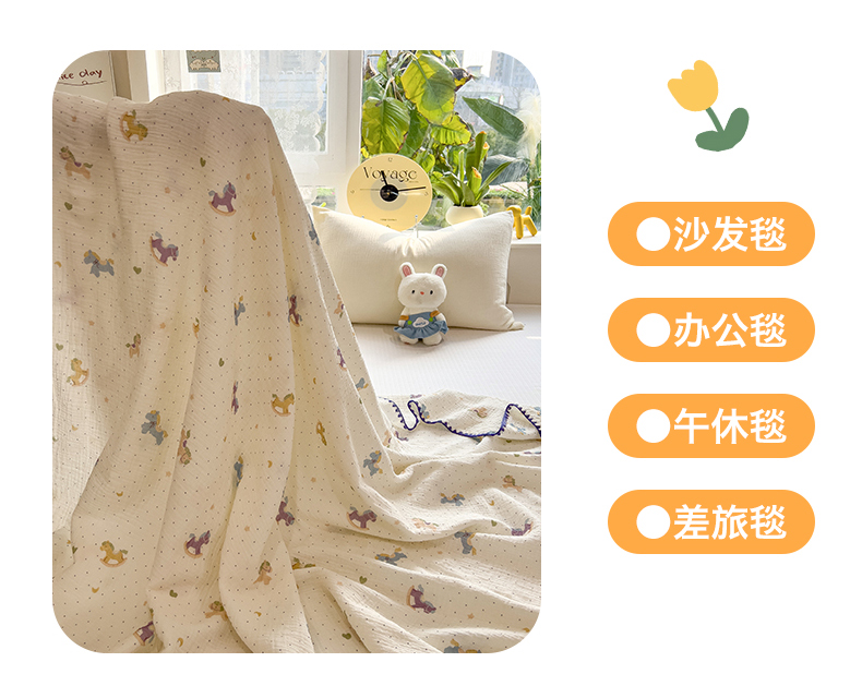 商品名称:布凡家居 2026新款全棉纯棉双层纱布毯夏被毯盖毯双层纱浴巾毯 皱皱纱-小木马