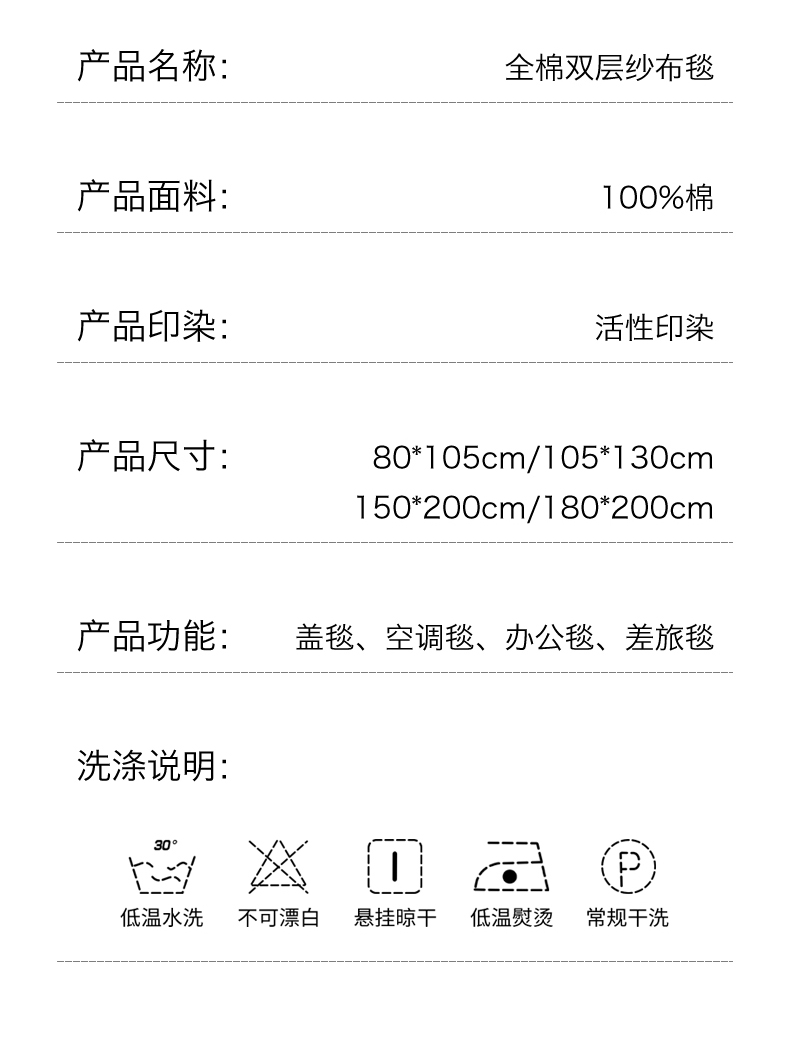 布凡家居 2026新款全棉纯棉双层纱布毯夏被毯盖毯双层纱浴巾毯 皱皱纱-小木马