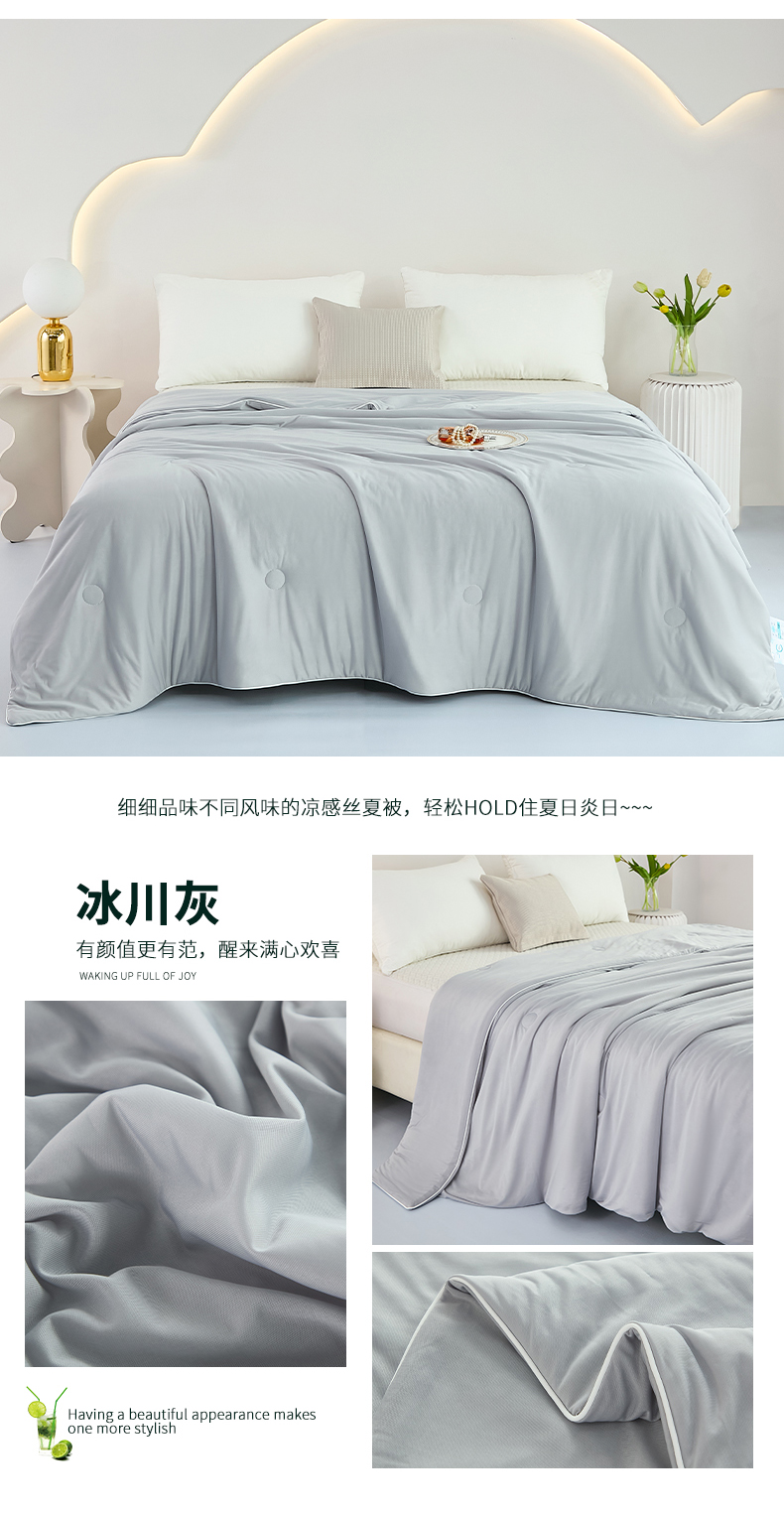(总)美丽折家纺 2026新款A类水洗棉夏被,灰色,蓝色,米白