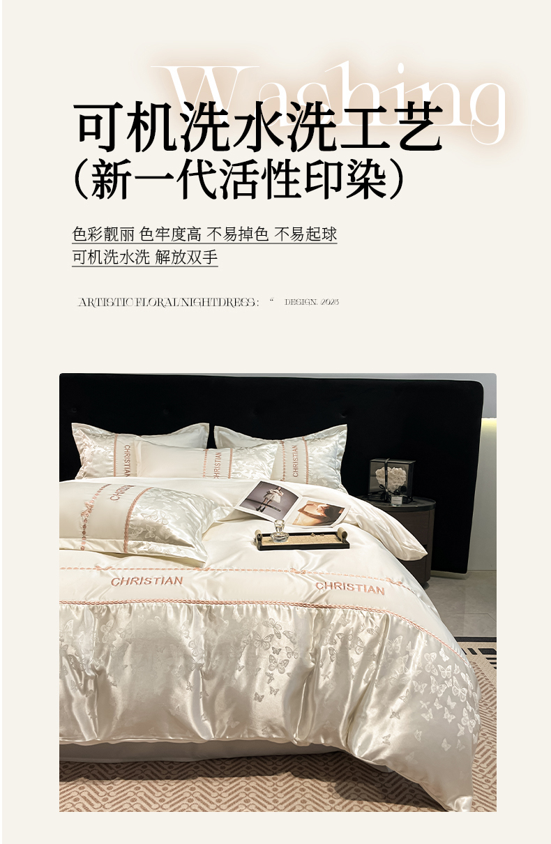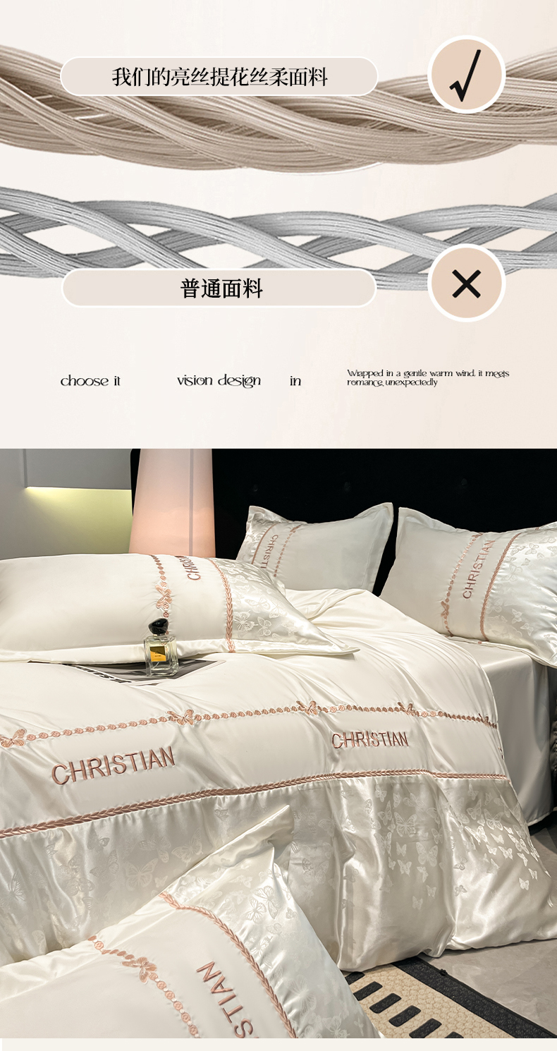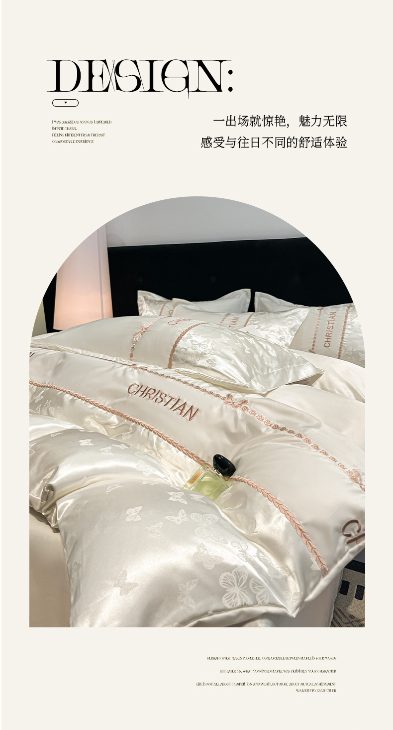 当前位置: 91家纺网 > 商品网购 > 床品套件 > 四件套 > 其它四件套 > 金牛座家纺 2026新款亮丝细斜纹贡缎提花重工刺绣四件套床盖四件套-醉蝶 醉蝶-奶白