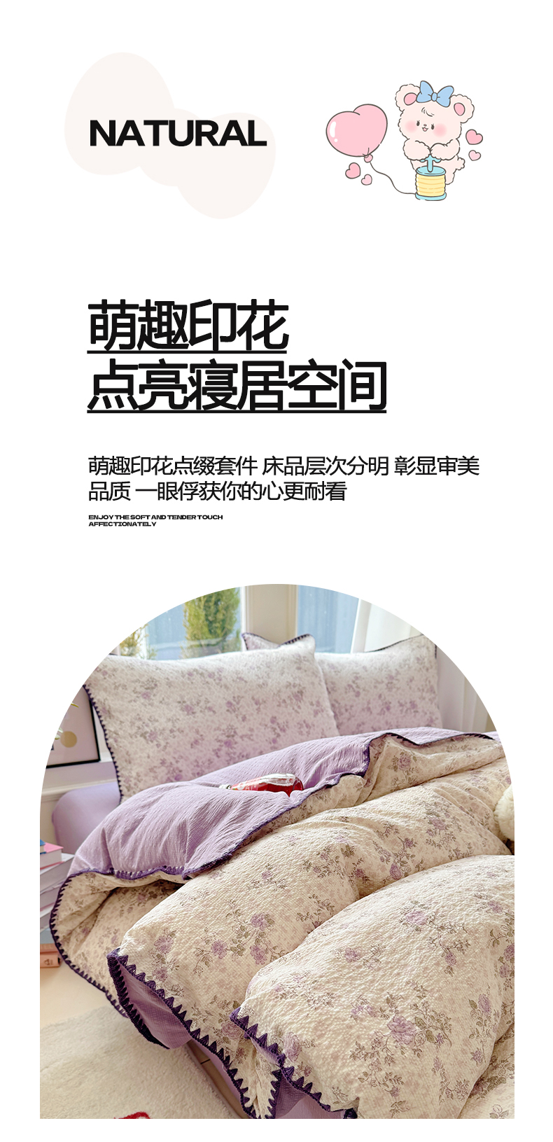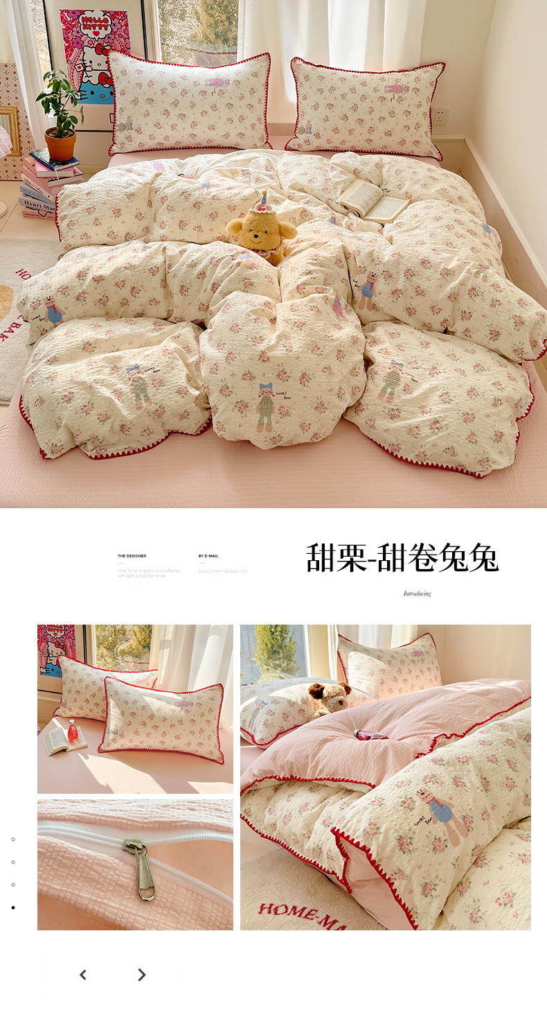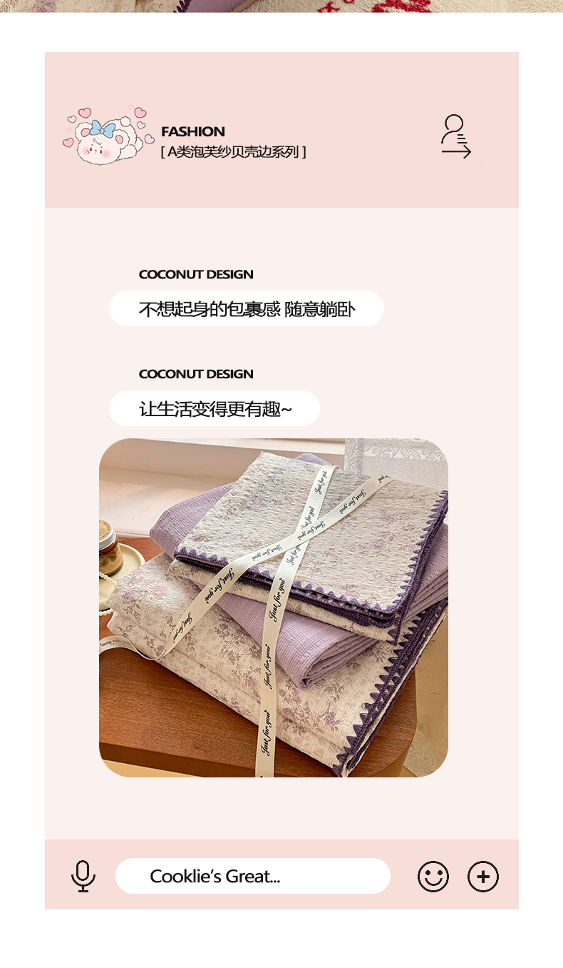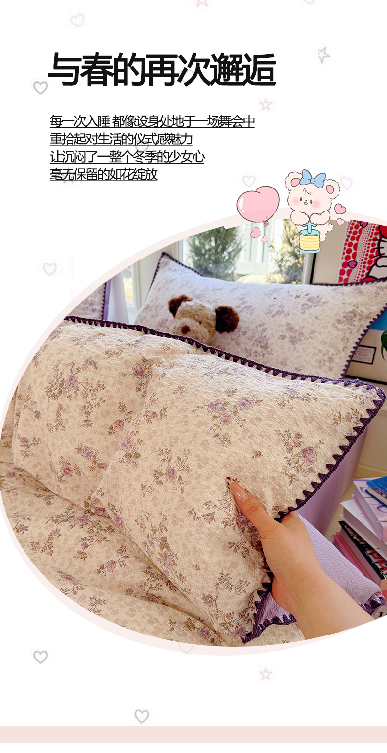 当前位置: 91家纺网 > 商品网购 > 床品套件 > 四件套 > 其它四件套 > 玉海棠家纺 2026新款高品质A类泡芙纱甜栗贝壳边套件系列-小红书推荐(110g) 甜栗-柔紫碎花屿