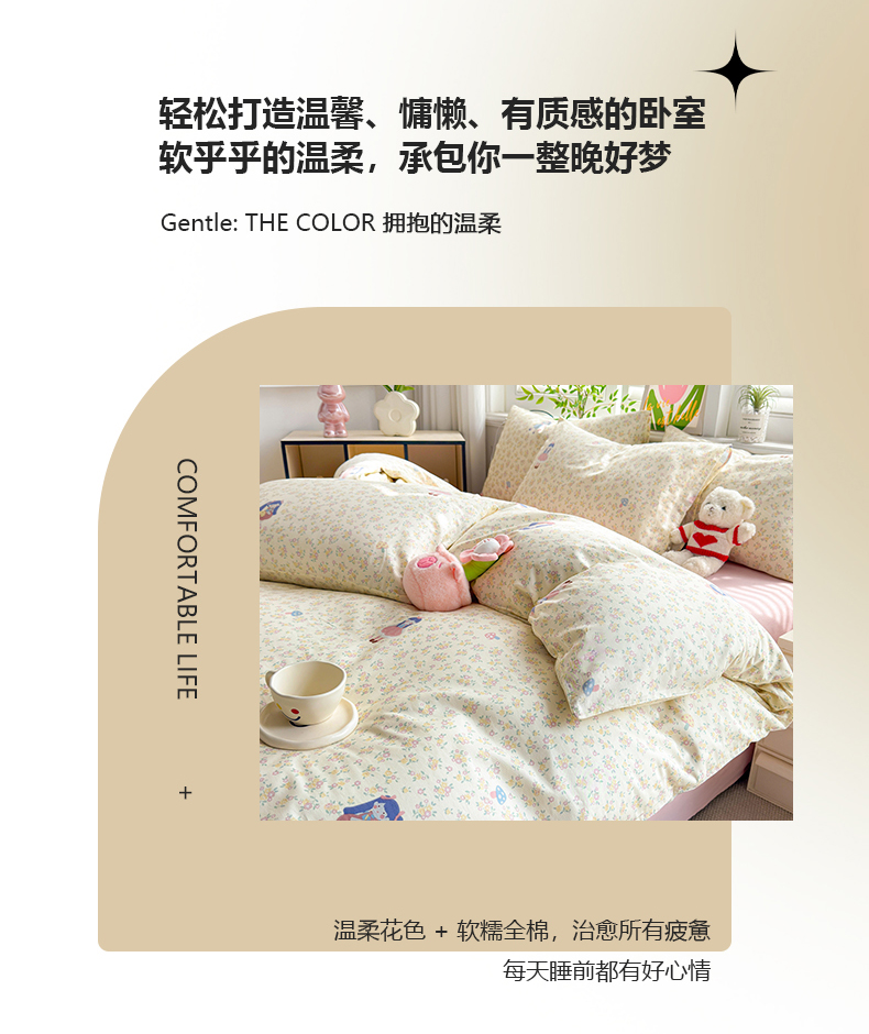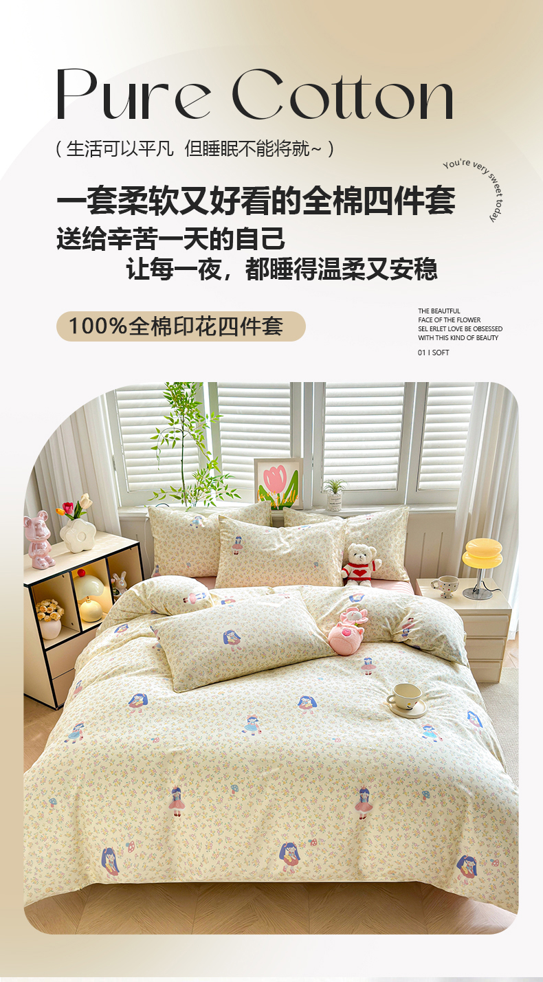 • 91家纺网 家纺一手货源 找家纺 黛妮雅 2026新款AB版全棉印花单被套床单枕套 送买家秀 花季少女