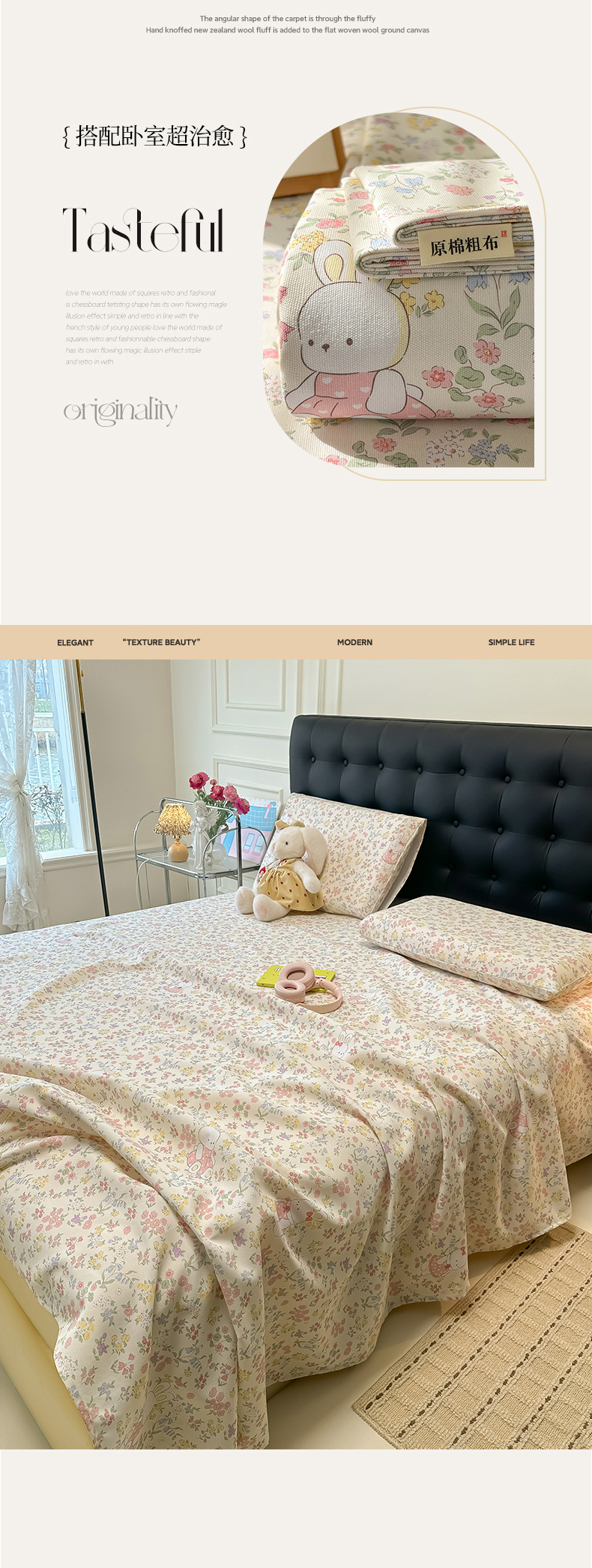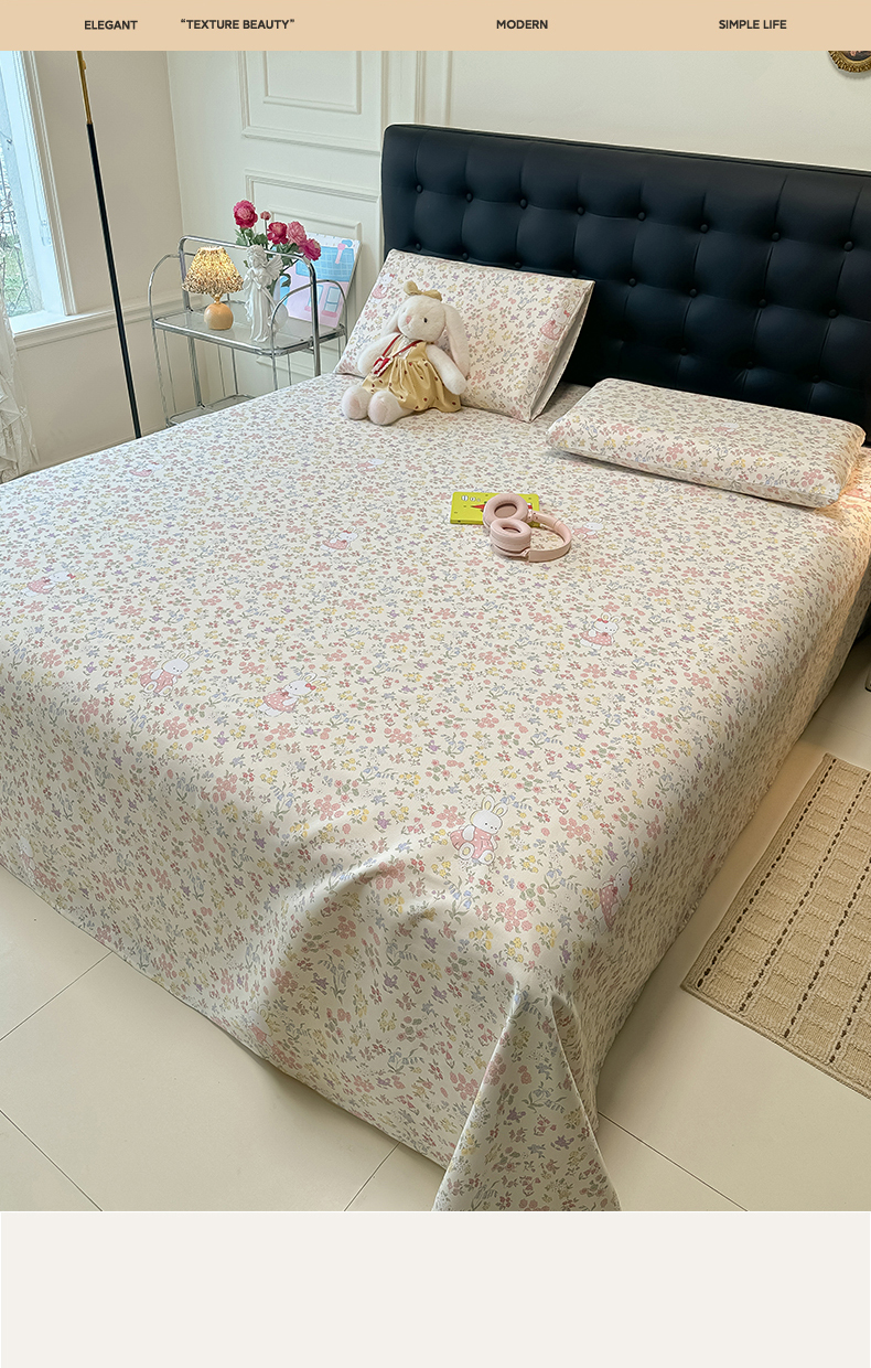 • 91家纺网 家纺一手货源 找家纺 韩巢家纺 2026新款老粗布床单凉席席子床单单件 兔子的花园【老粗布】