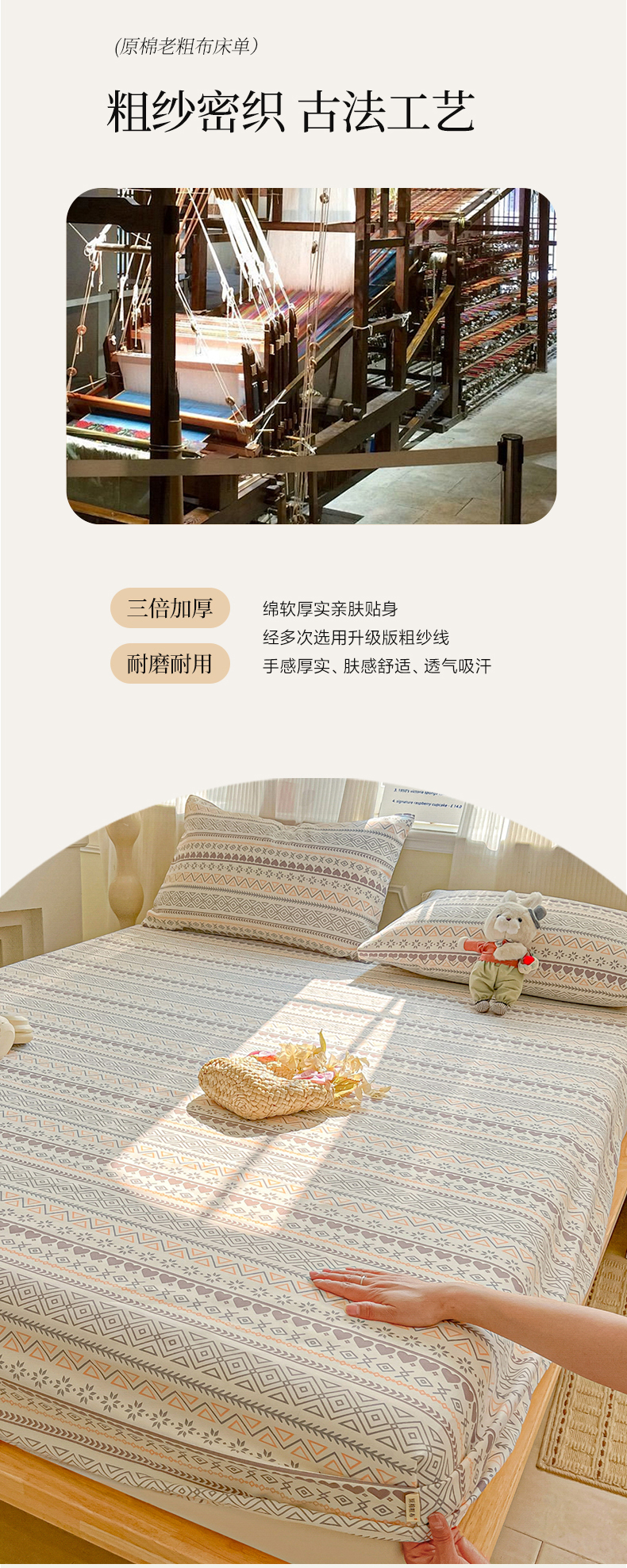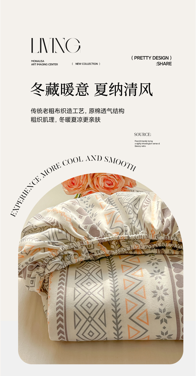 • 91家纺网 家纺一手货源 找家纺 韩巢家纺 2026新款老粗布床笠春夏季凉席席子热销款防滑床笠单件 逸趣【老粗布】