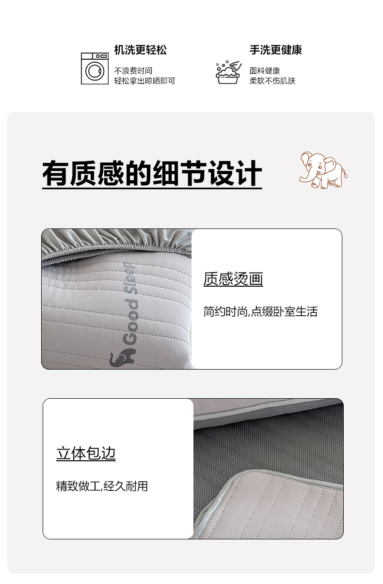 商品名称:TT.one 塔塔家居 2026新款A类自然凉感简约深睡眠清新小象夏日凉感垫 小象-摩卡灰