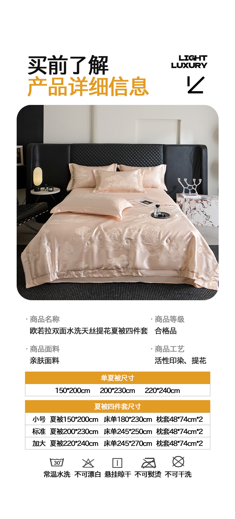 当前位置: 91家纺网 > 商品网购 > 床品套件 > 四件套 > 夏被四件套 > 置顶家纺 2026新款双面水洗天丝提花夏被四件套-欧若拉 欧若拉-玉色