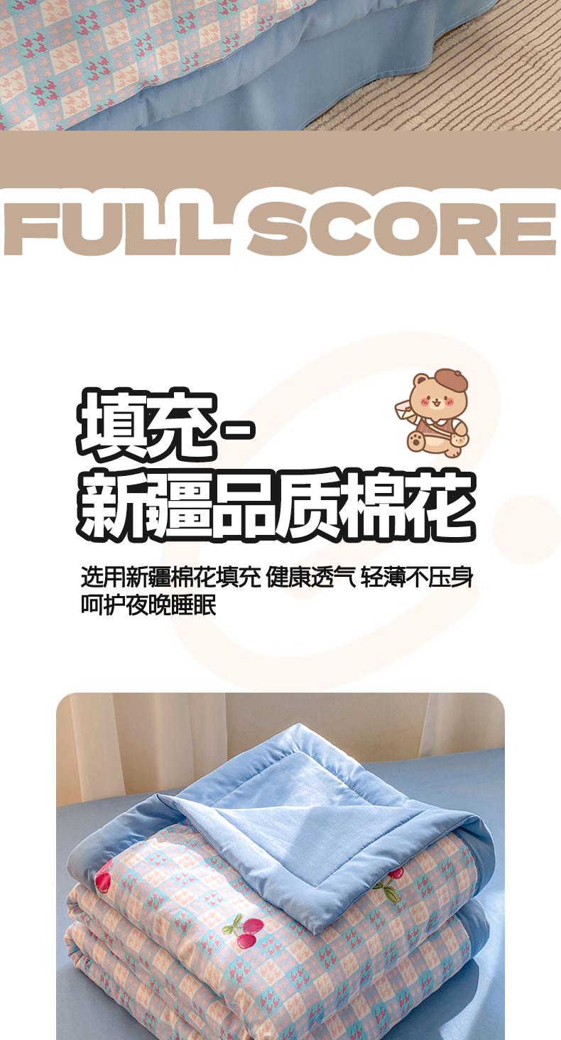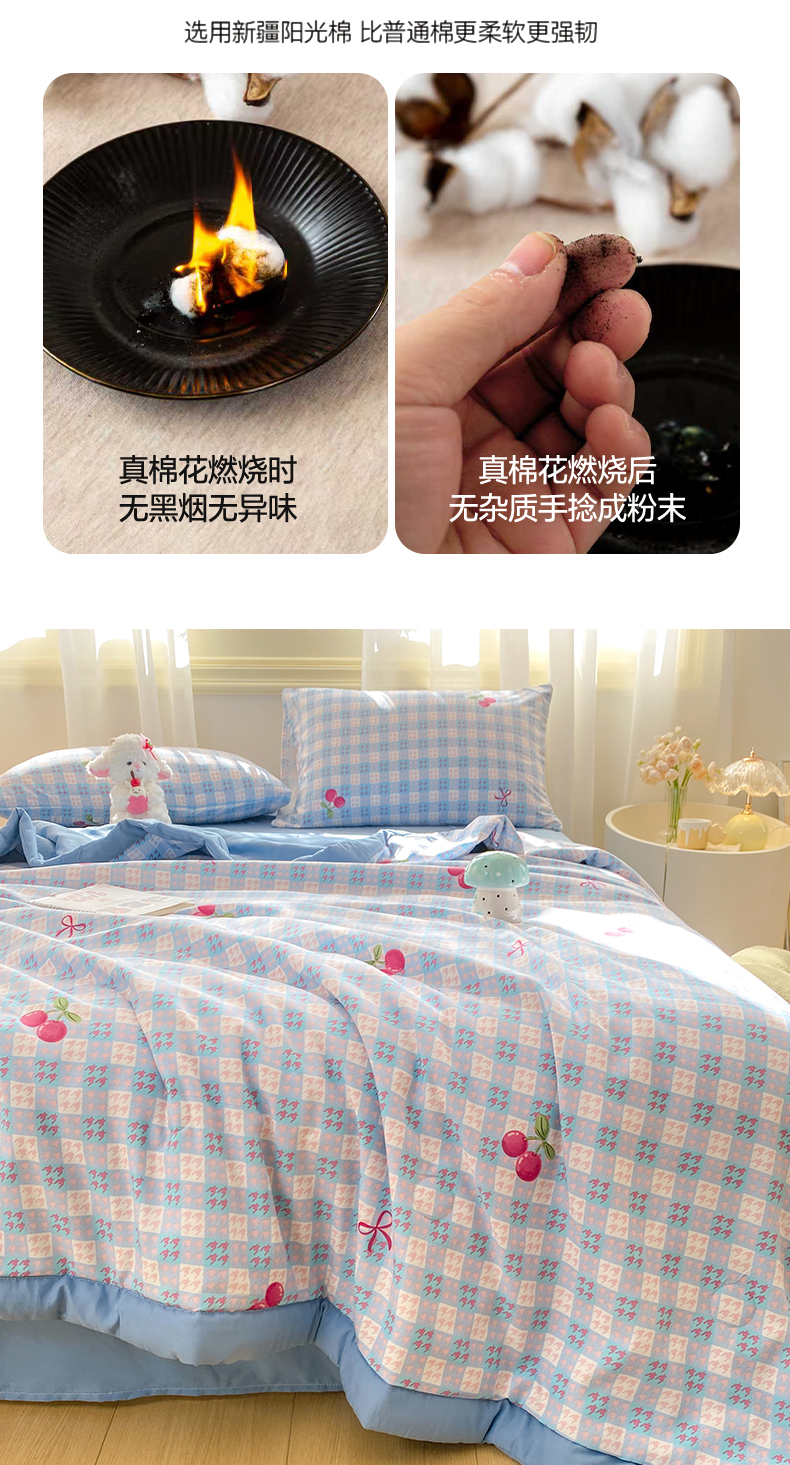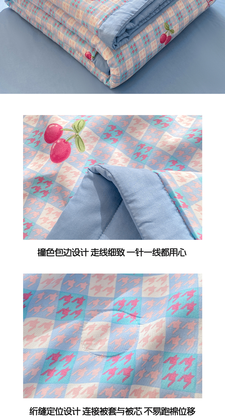 商品名称:憨豆家纺 2026新款云朵棉被水洗棉印花新疆棉花夏被夏凉被空调被子直播被芯(常年有货) 樱桃格