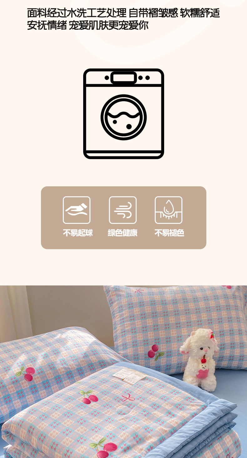 (总)憨豆家纺 2026新款水洗冰丝夏被四件套星球水洗真丝夏凉被(含抗菌棉)跨境外贸床笠款空调被,冰川蓝,冰海灰,冰甜绿,远山蓝
