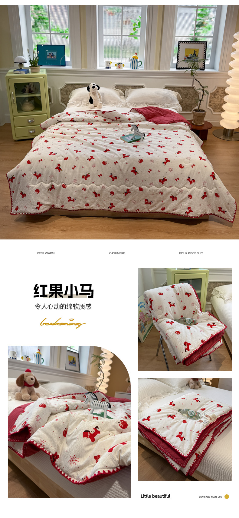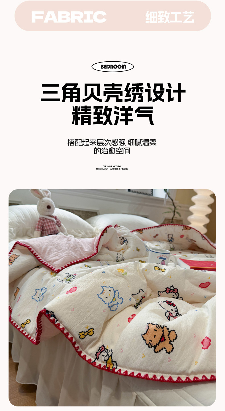 商品名称:赛琳 2026新款云感双层纱贝壳绣夏被夏凉被空调被(有买家秀) 苹果小怪