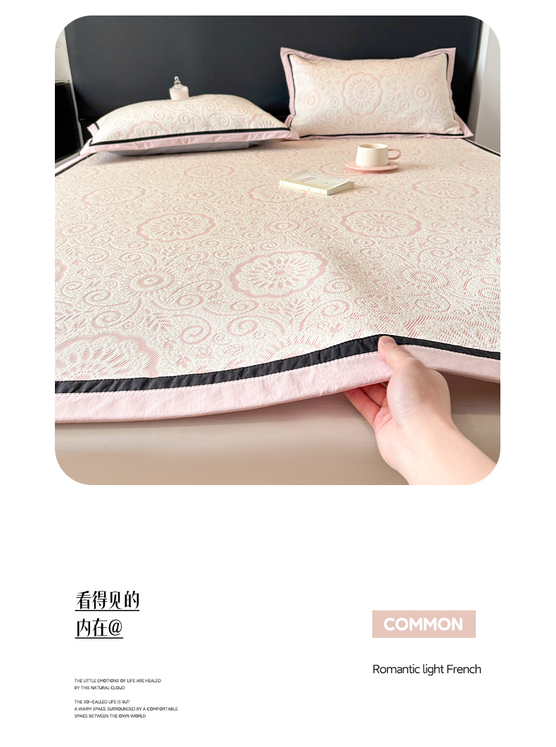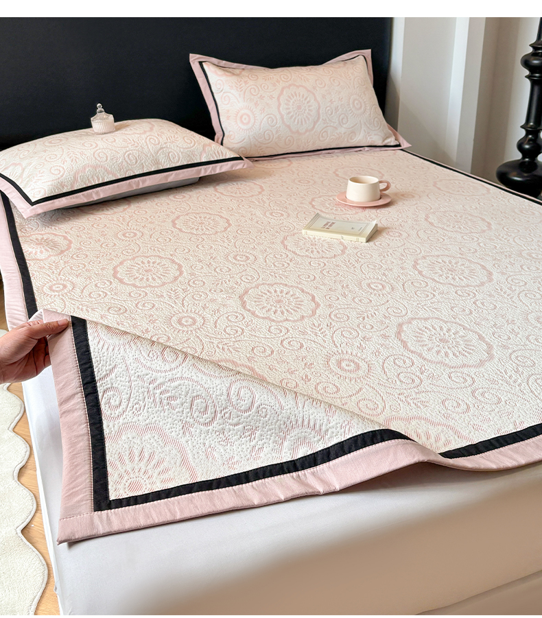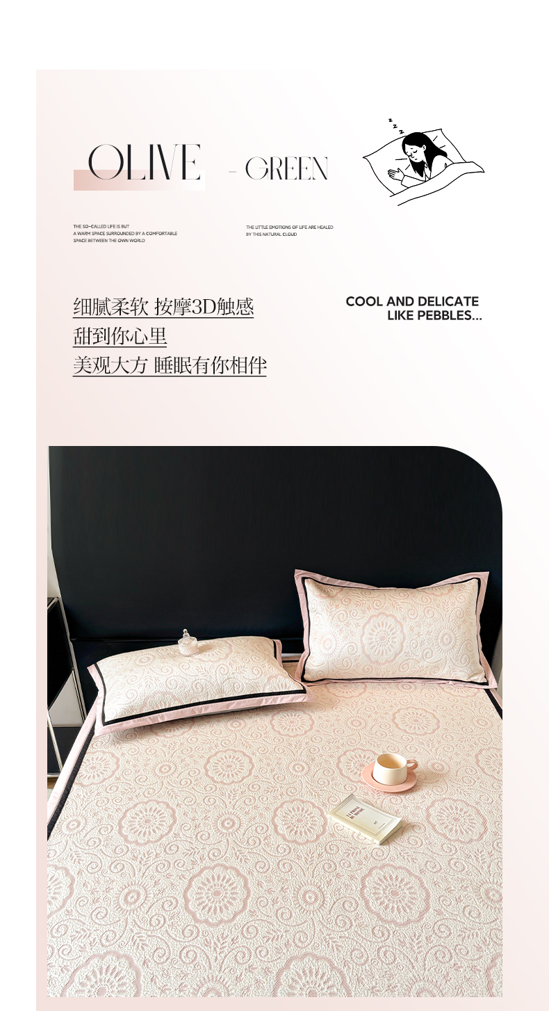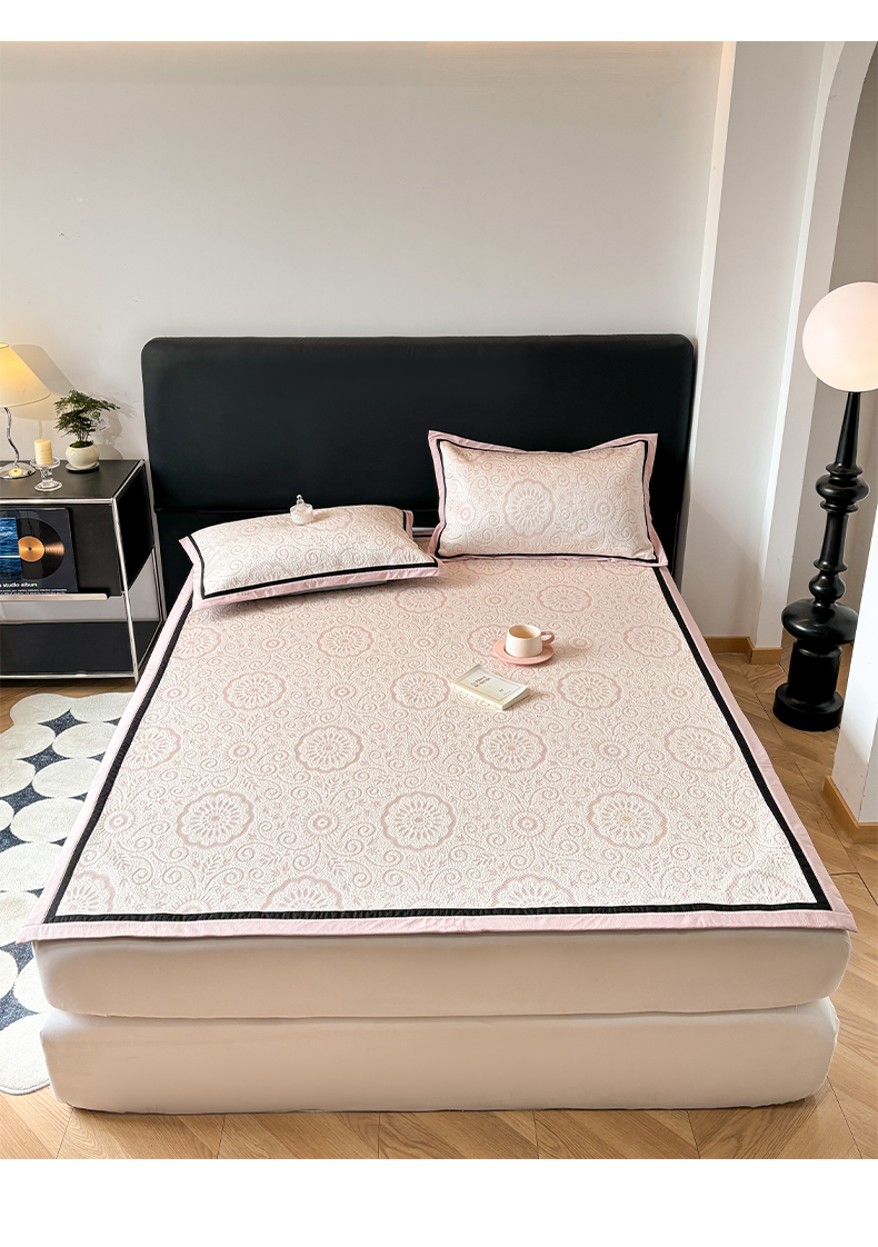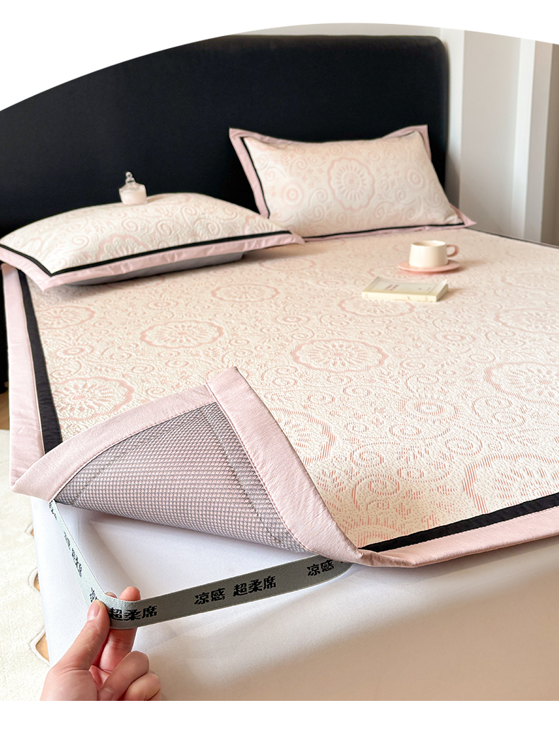 (总)雅居纺家纺 2026新款床裙款玫瑰系列凉感席,玫瑰-粉,玫瑰-灰,玫瑰-蓝,玫瑰-绿