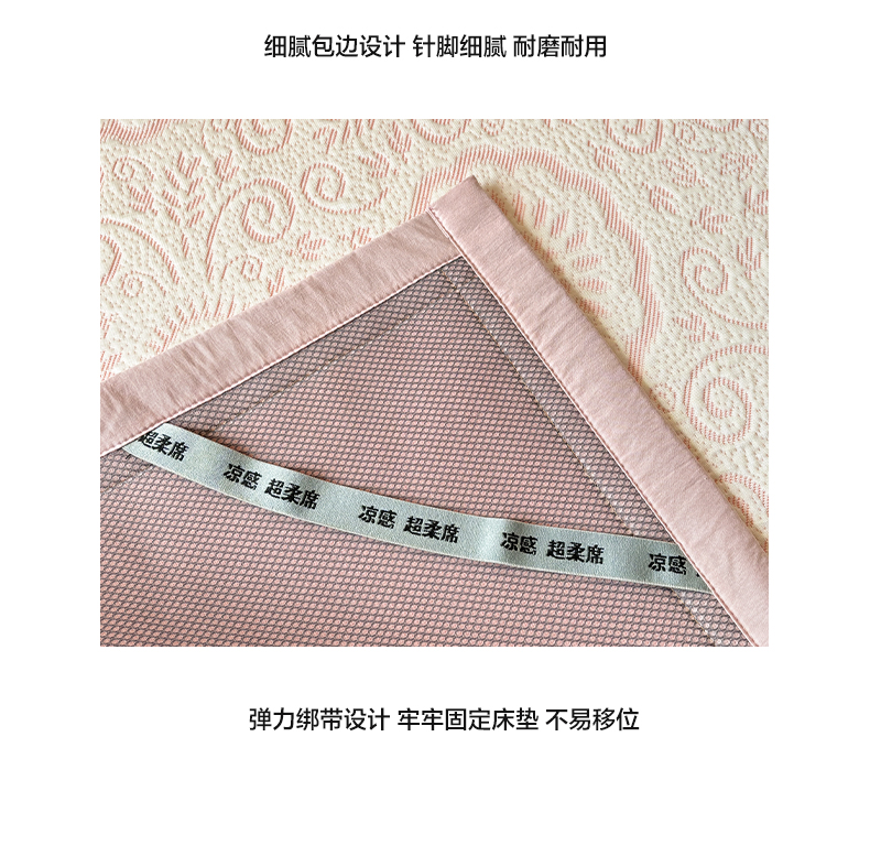 商品名称:雅居纺家纺 2026新款A类加厚三明治底黑边PE凉感席 圆舞-粉