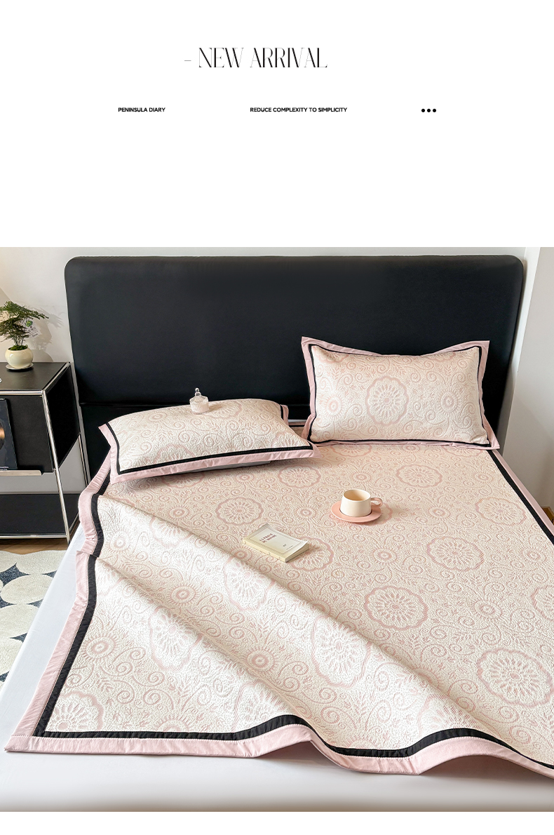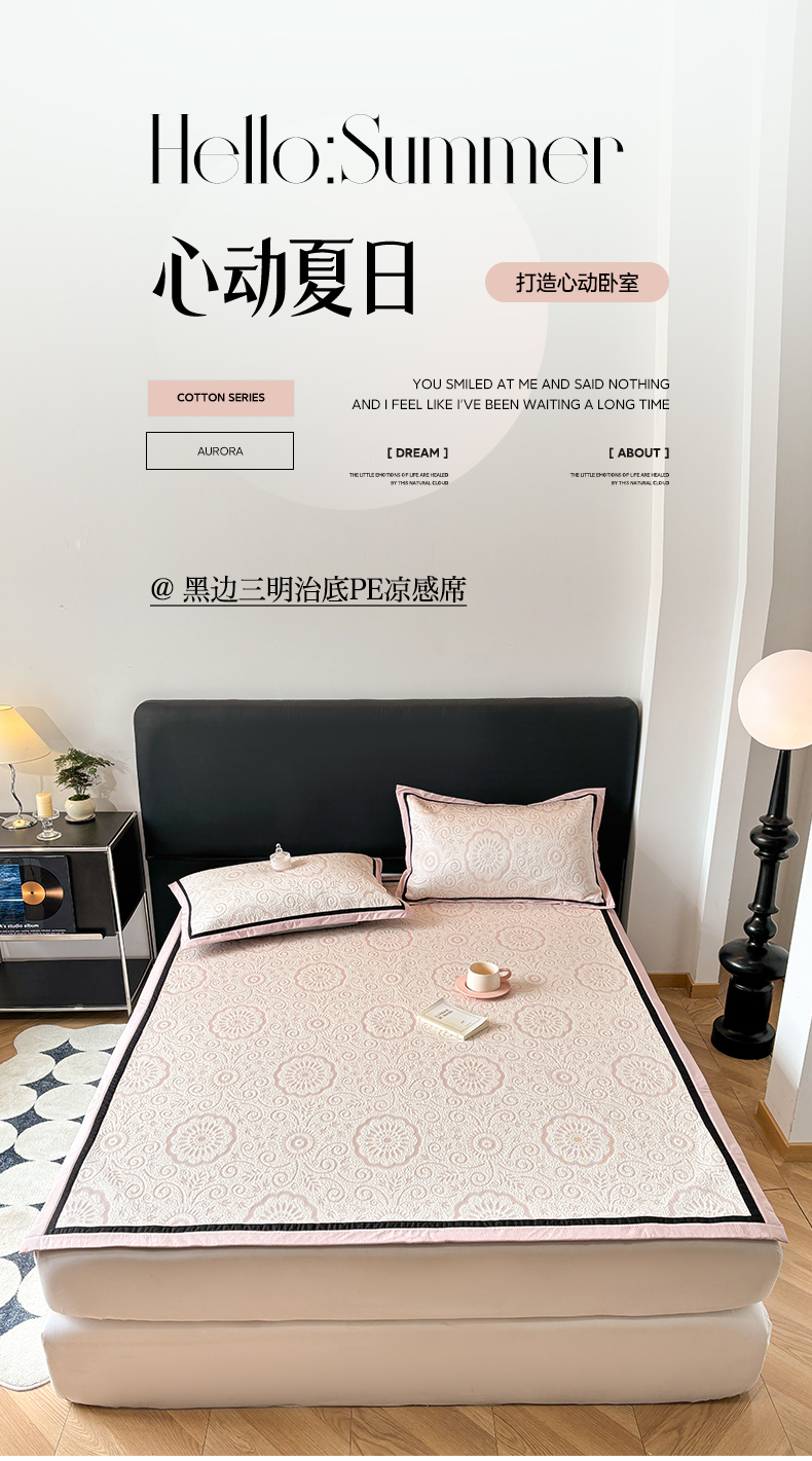(总)雅居纺家纺 2026新款A类加厚三明治底黑边PE凉感席,枫叶-粉,枫叶-灰,枫叶-卡其,枫叶-蓝,梦影-粉,梦影-灰,梦影-绿,叶韵-灰,叶韵-卡其,圆舞-粉