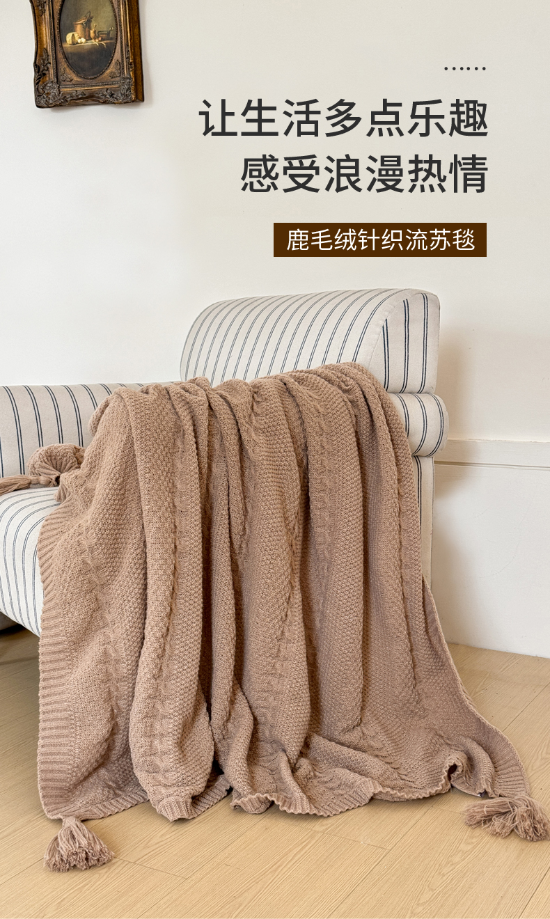 当前位置: 91家纺网 > 商品网购 > 毛毯休闲毯绒毯 > 针织毯 > 丹本家纺 2026新款针织毛毯鹿毛绒纯色流苏航空休闲毯办公午睡盖毯多功能装饰毯 组合图仅供展示不可下单