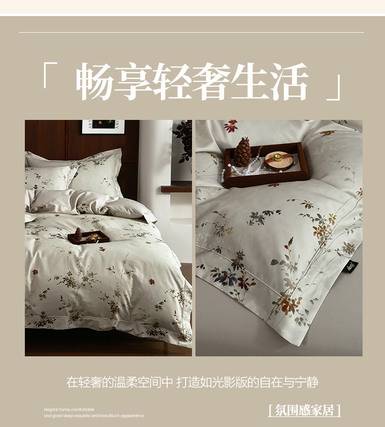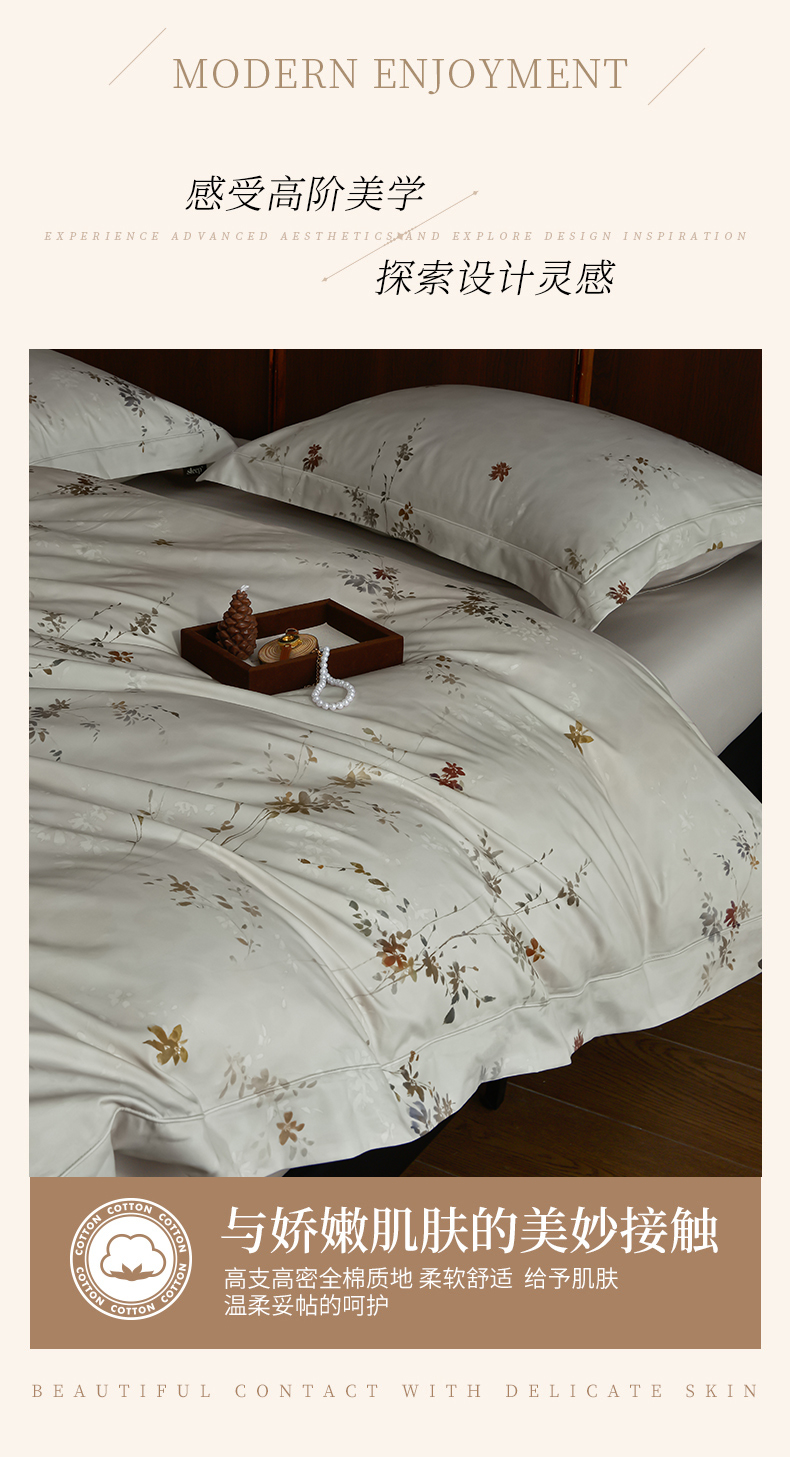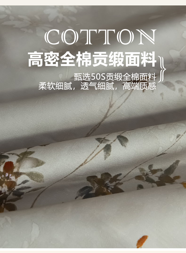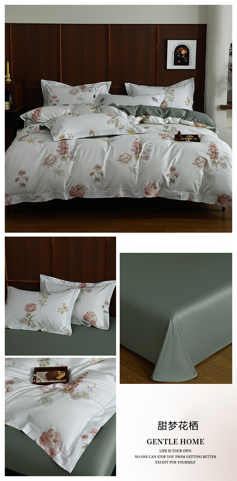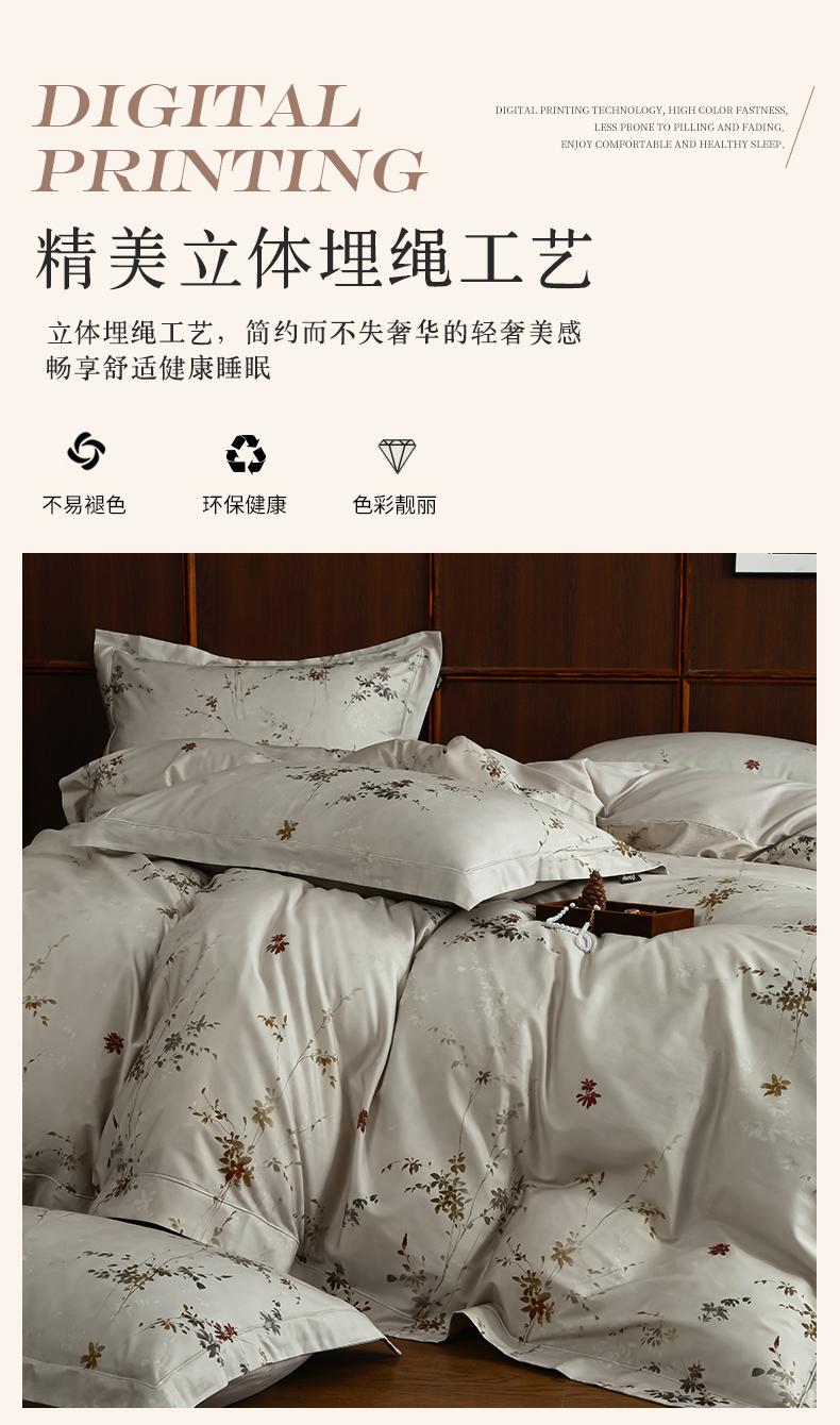 (总)金昱纺 2026新款全棉50S长绒棉数码印花宽边埋绳款四件套(带精美礼盒包装),叶栖-咖,黛秋-粉,花织软梦,摩卡-绿,甜梦花栖,榭风轻眠